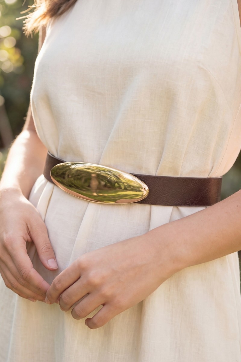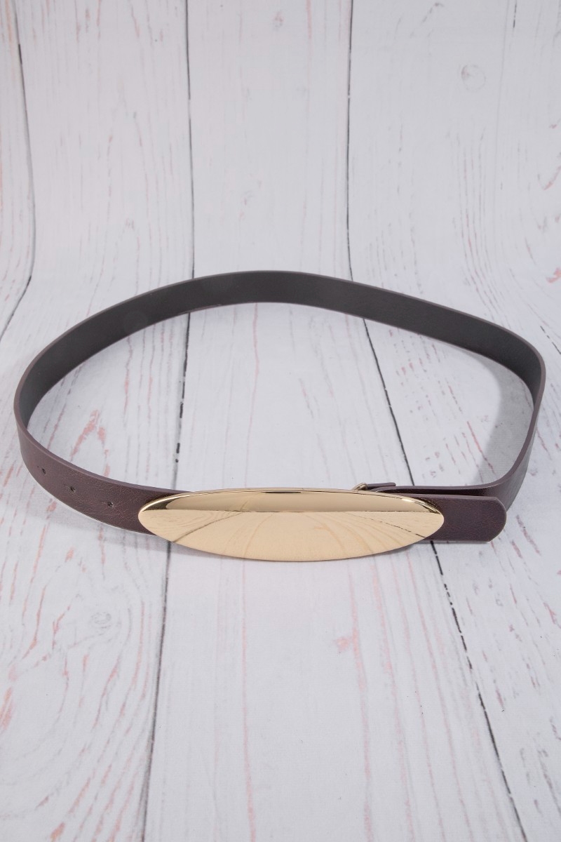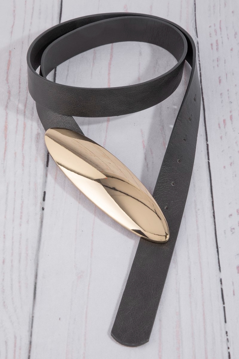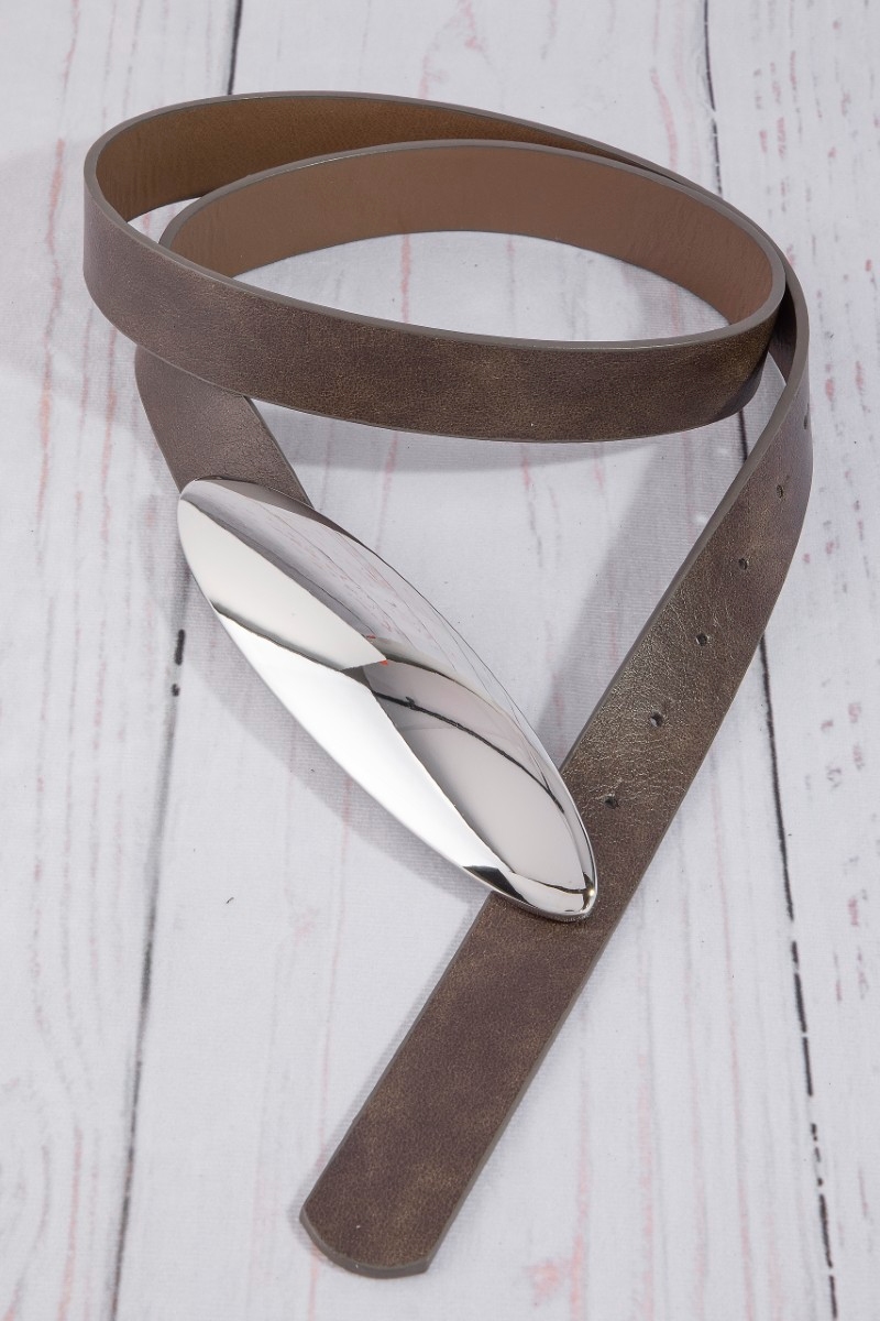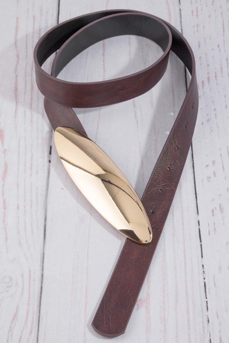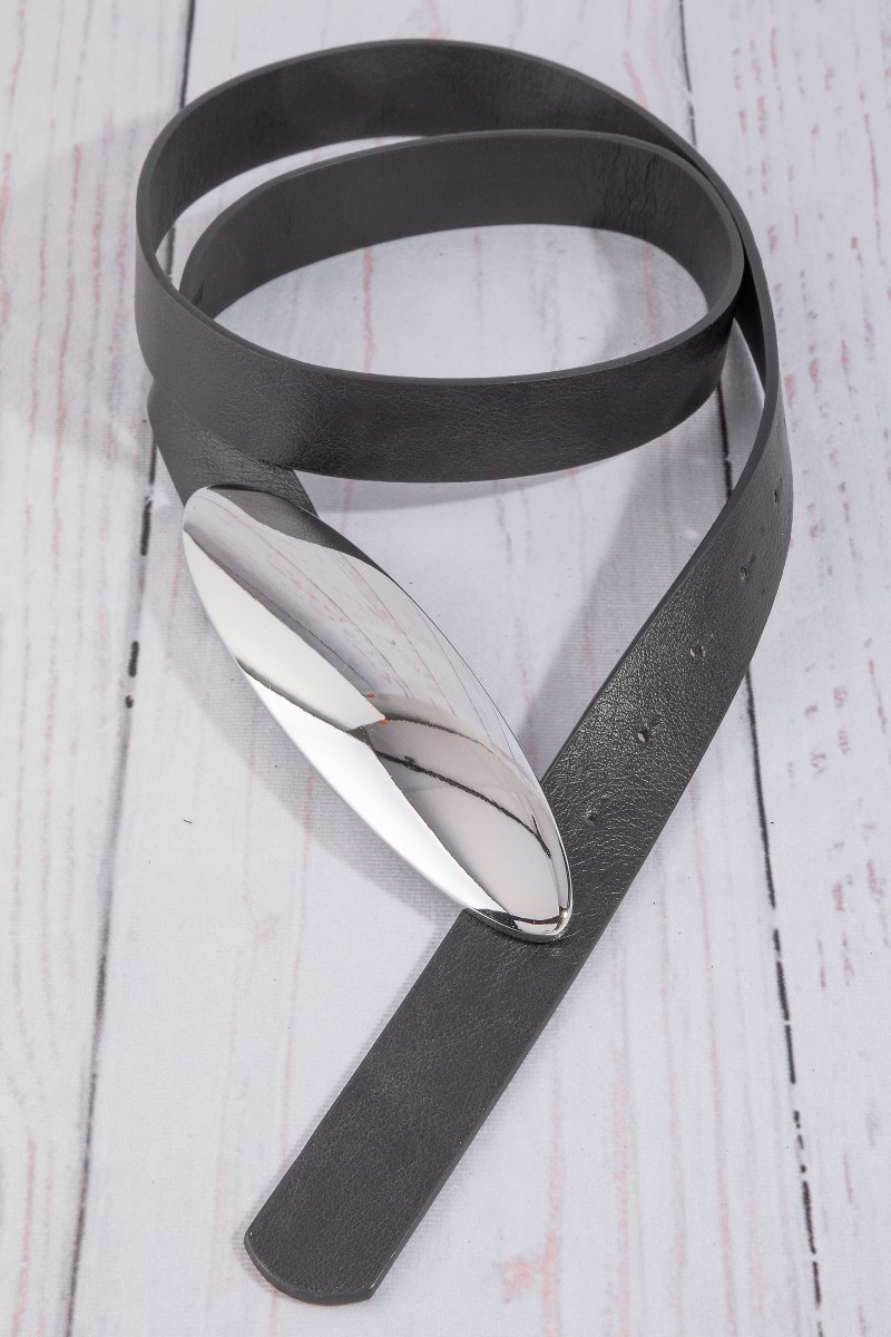 - This belt showcases a timeless vegan leather oval long plate buckle style. Celebrate individuality with this belt that effortlessly expresses your unique sense of style.