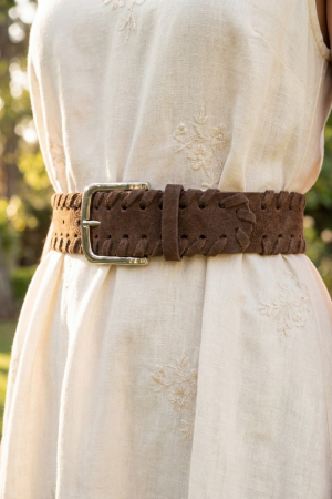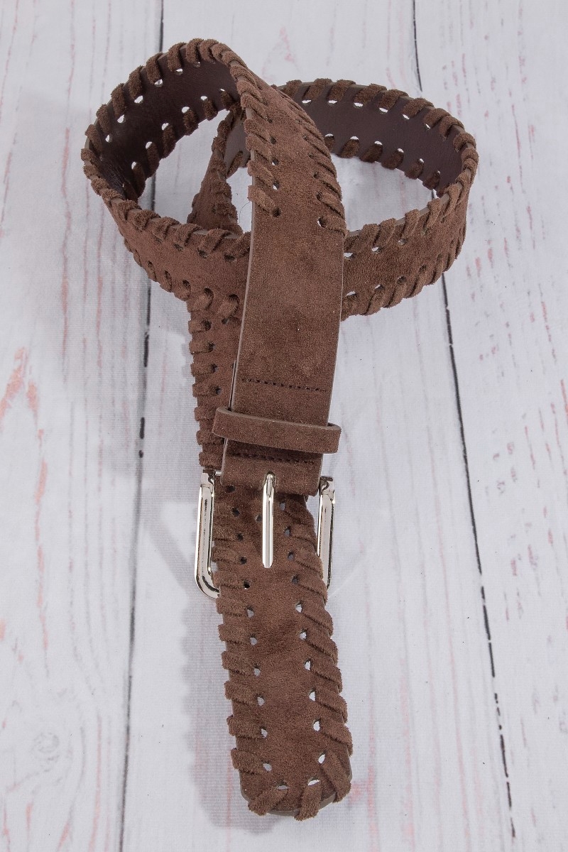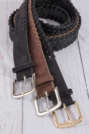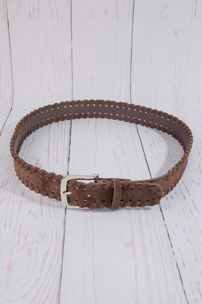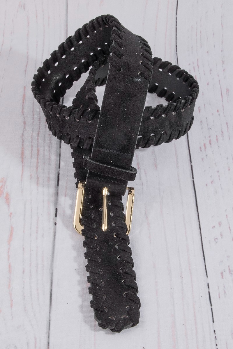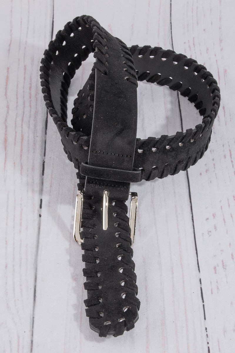- This belt features a fashionable wide vegan leather whipstitch edge style. Discover the perfect balance of functionality and fashion.