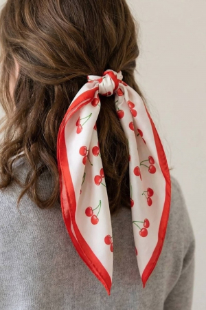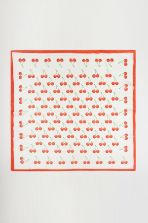 - This scarf brings a luxurious cherry fruit print bandana style. Savor the allure of detailed craftsmanship in this exquisite scarf.