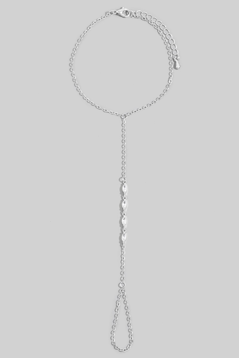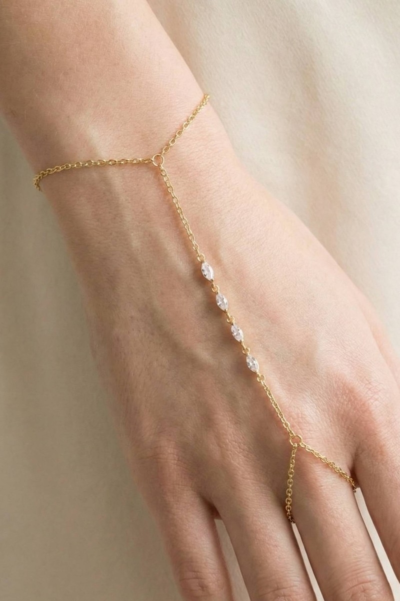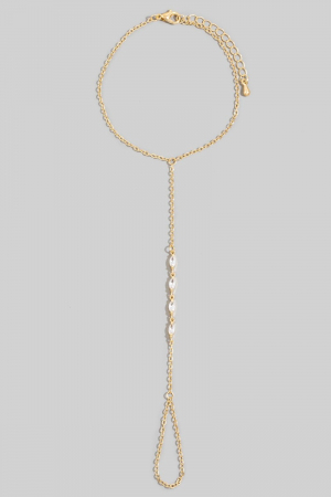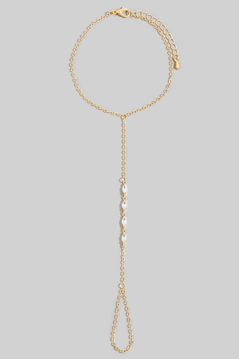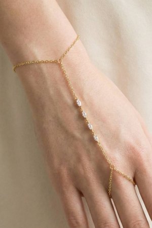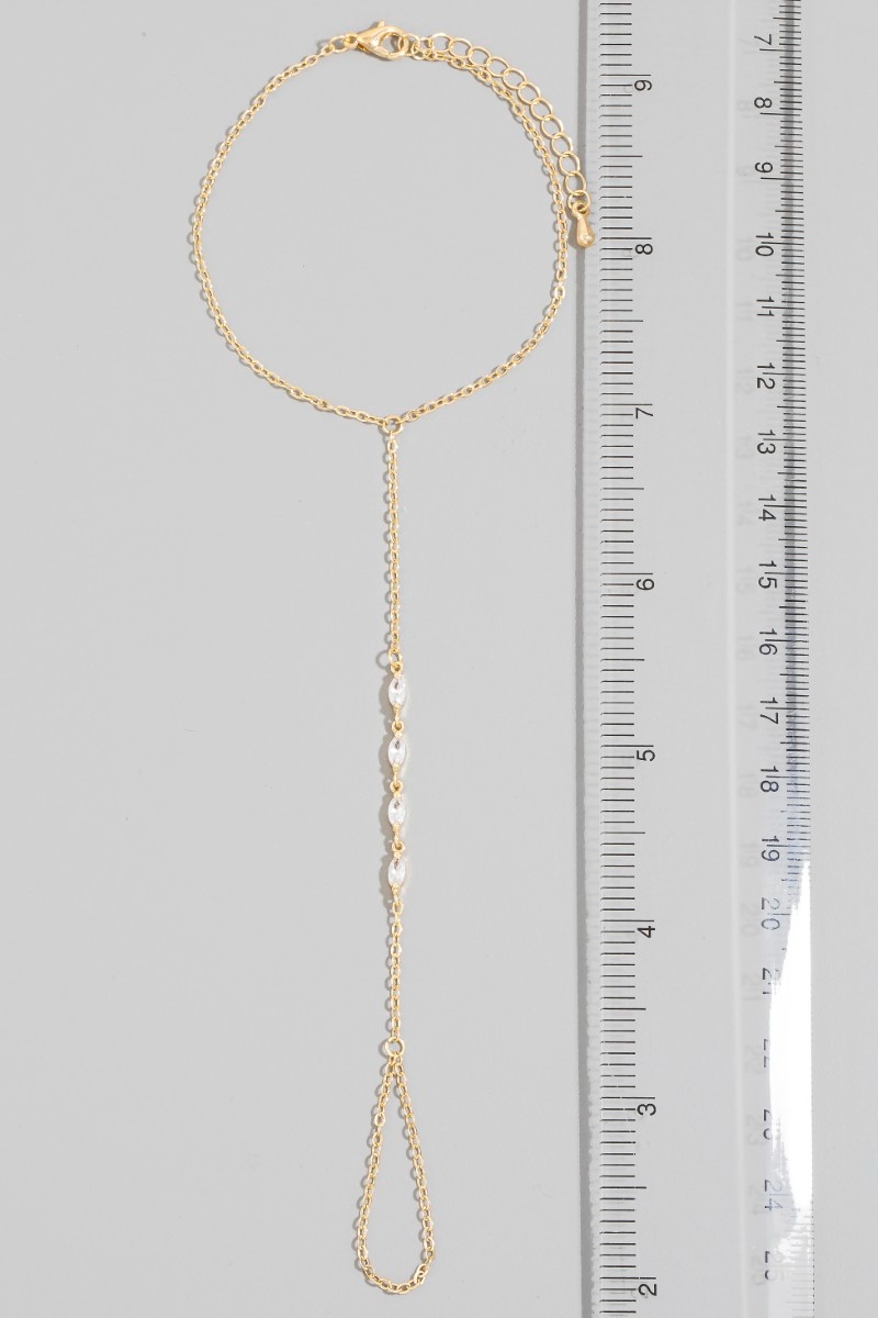 • This chain bracelet showcases a unique marquise cubic zirconia hand ring style. Experience the joy of accessorizing with this piece that effortlessly combines versatility and charm.