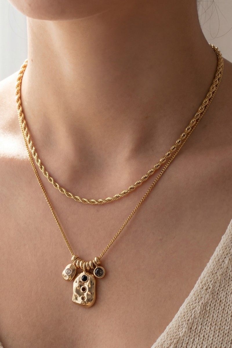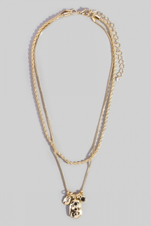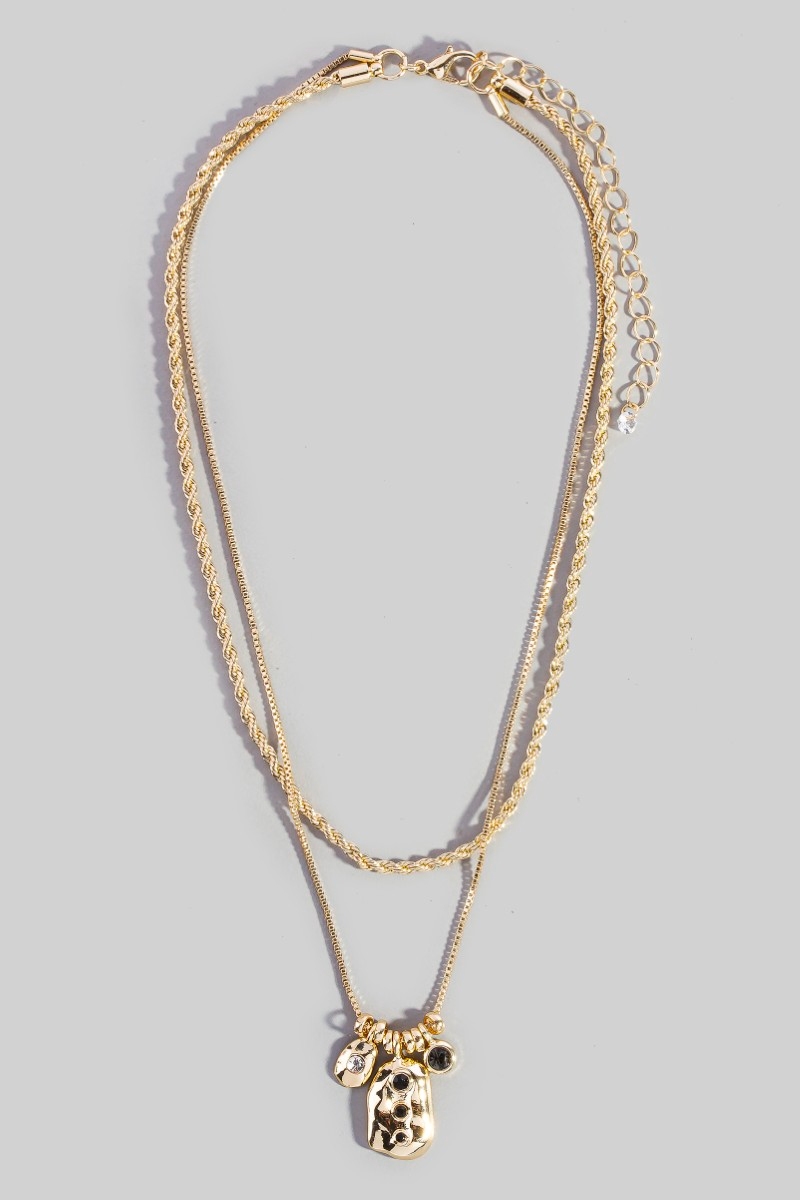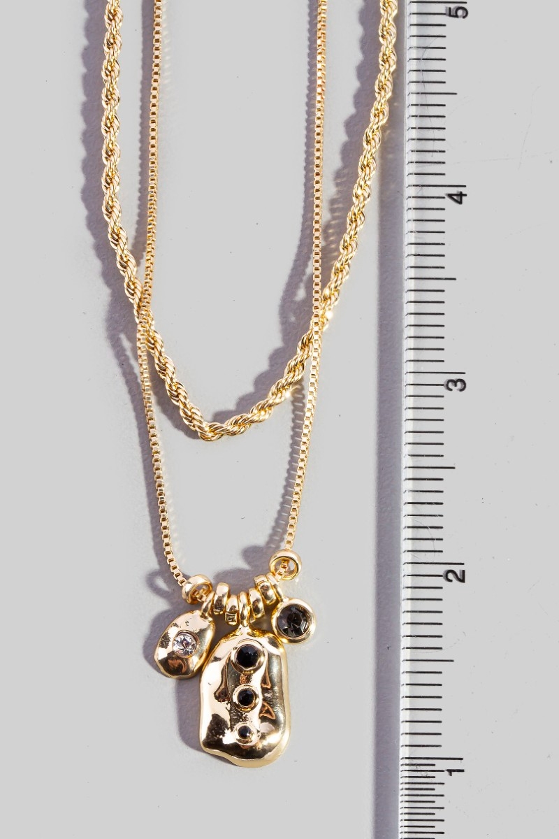 - This chain necklace showcases a unique hammered charm pendant double layer rope & box style. Elevate your ensemble with this chain necklace that effortlessly captures the essence of refined fashion.
