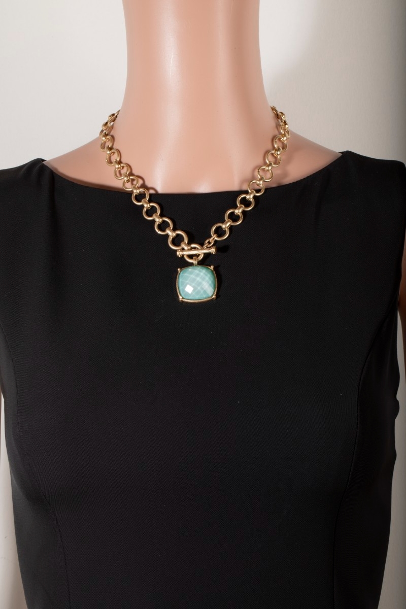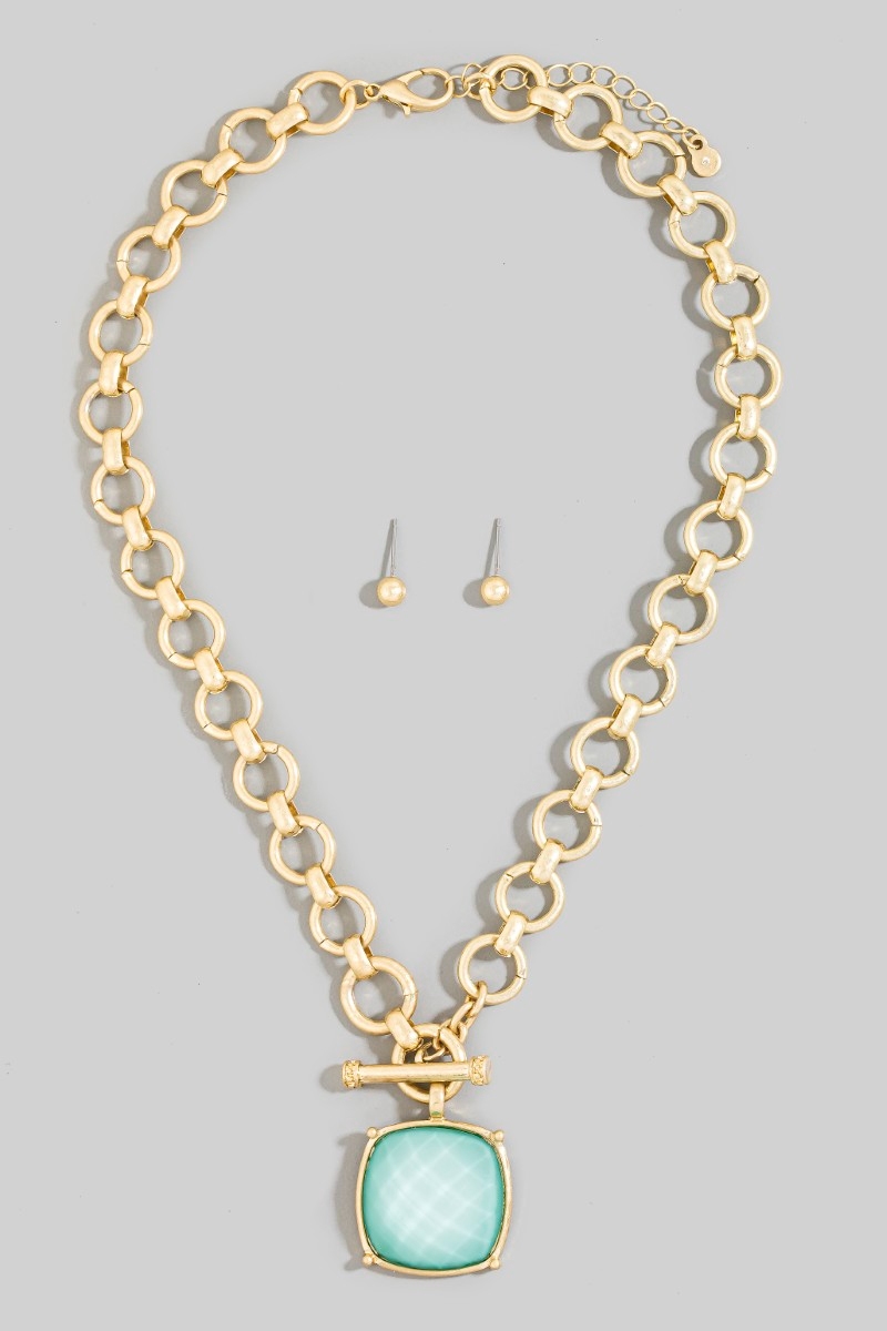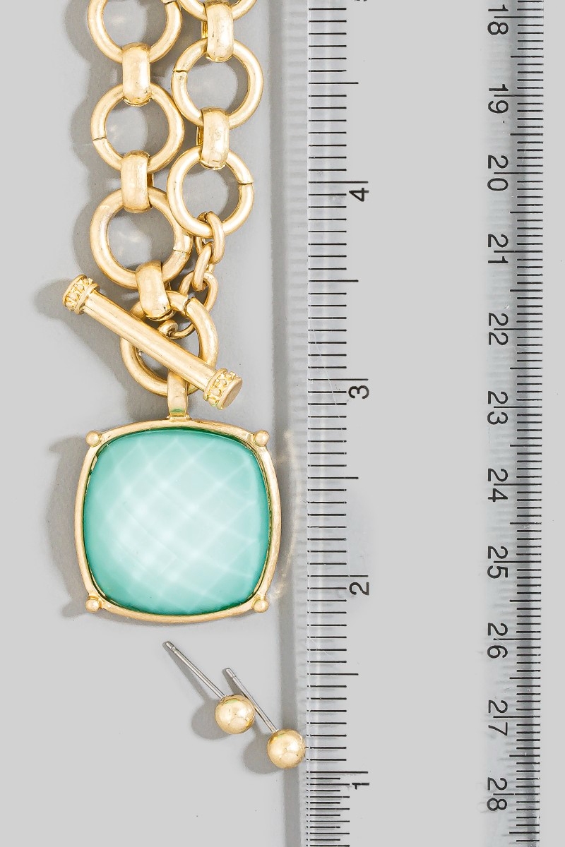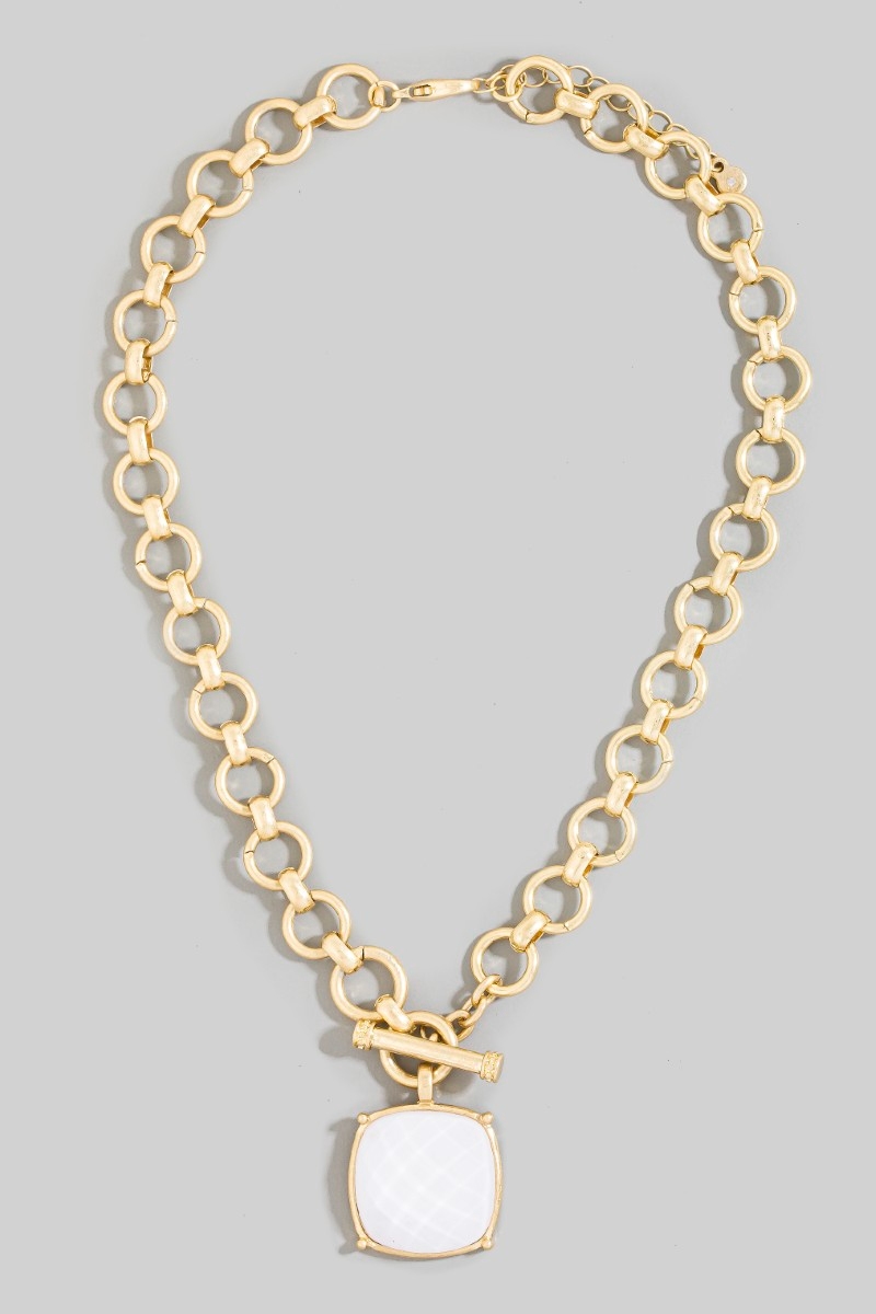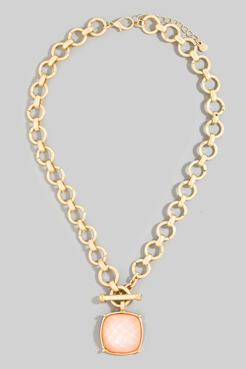 - This chain necklace introduces a stunning large square faceted stone pendant toggle style. Experience a burst of creativity in accessorizing as this piece effortlessly sets the tone for your unique style.