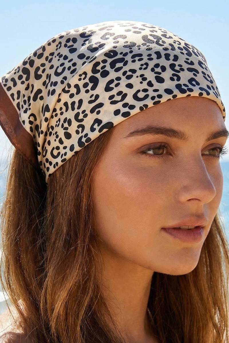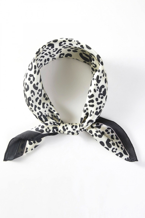 • This scarf introduces a stunning leopard pattern square bandana style. Elevate your ensemble with this chic, timeless scarf.