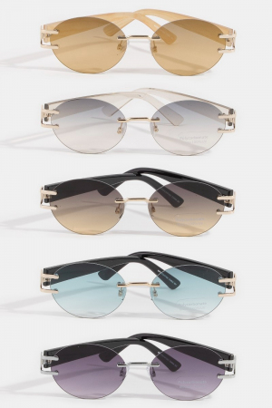 • This set of sunglasses brings a luxurious frameless oval sunglasses style. Step into a world of refined taste as this set of sunglasses effortlessly refines the details of your outfit.