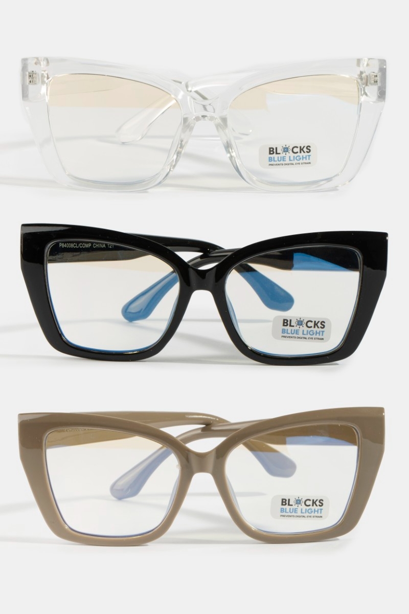 • This set of sunglasses displays a vibrant oversized cat eye blue light blocking sunglasses style. Elevate your ensemble with this set of sunglasses that effortlessly captures the essence of refined fashion.