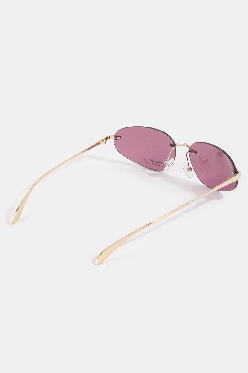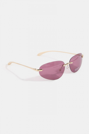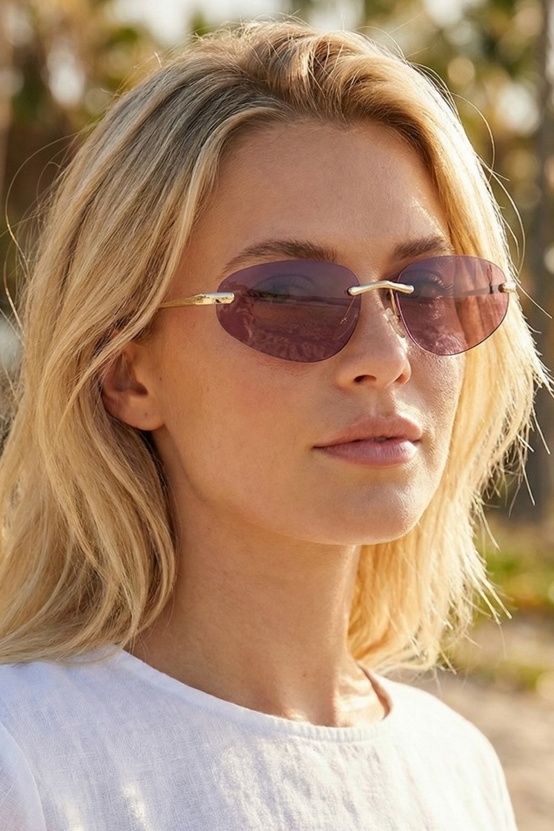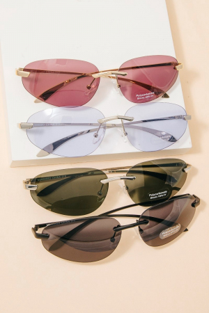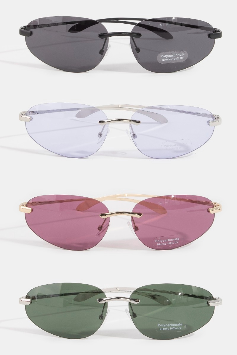 • This set of sunglasses brings a unique rimless oval sunglasses with double bridge style. Immerse yourself in fashion finesse with this statement set of sunglasses.
