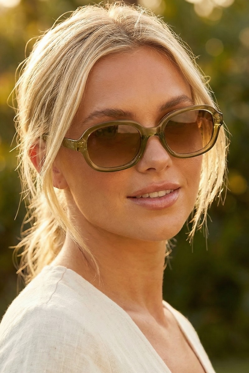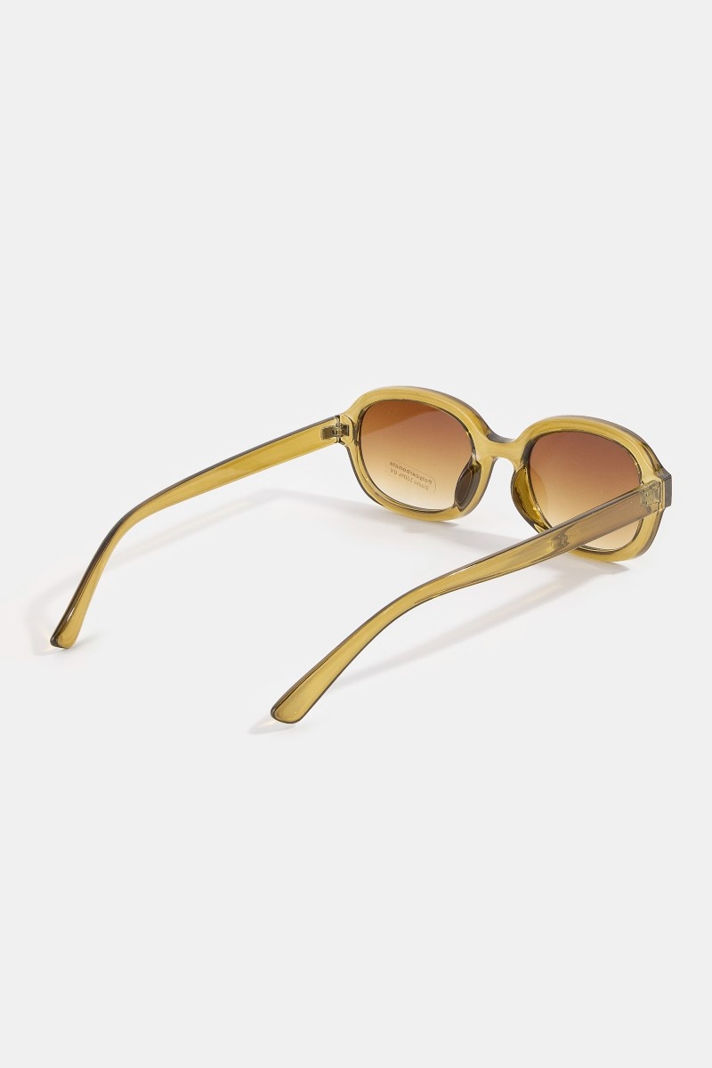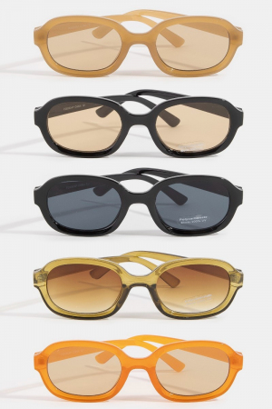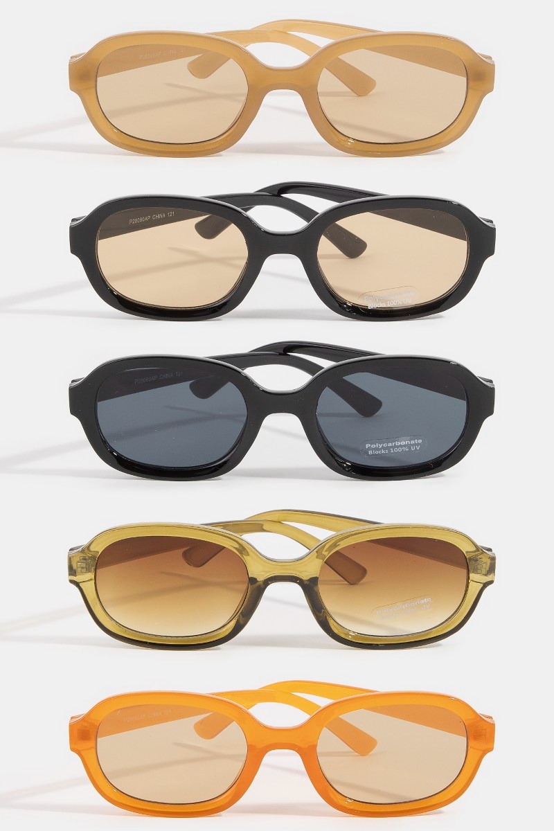 • This set of sunglasses displays a fashionable retro oval sunglasses with chunky colored frame style. Discover the perfect balance of subtlety and flair as this set of sunglasses effortlessly completes your look.