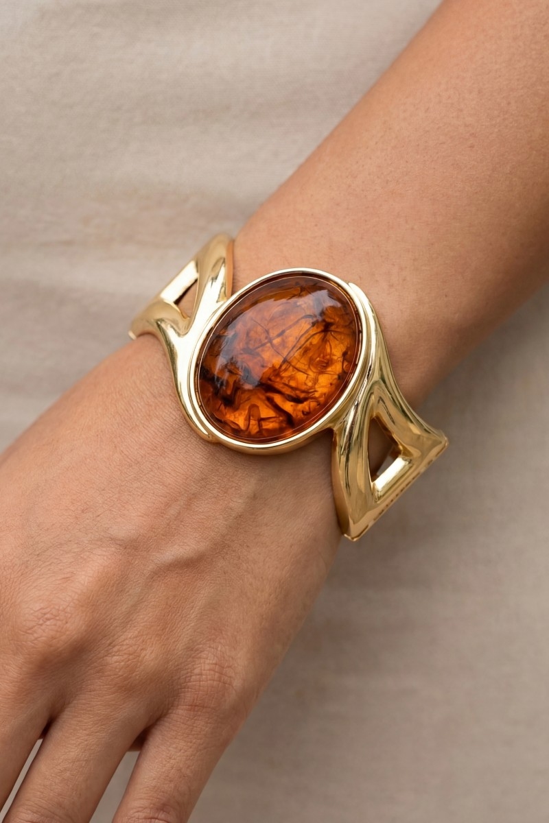 • This bangle bracelet features a fashionable oval stone style. Explore a refined sense of style with this bangle bracelet, seamlessly elevating the chic factor of your look.