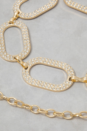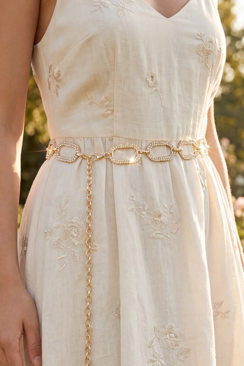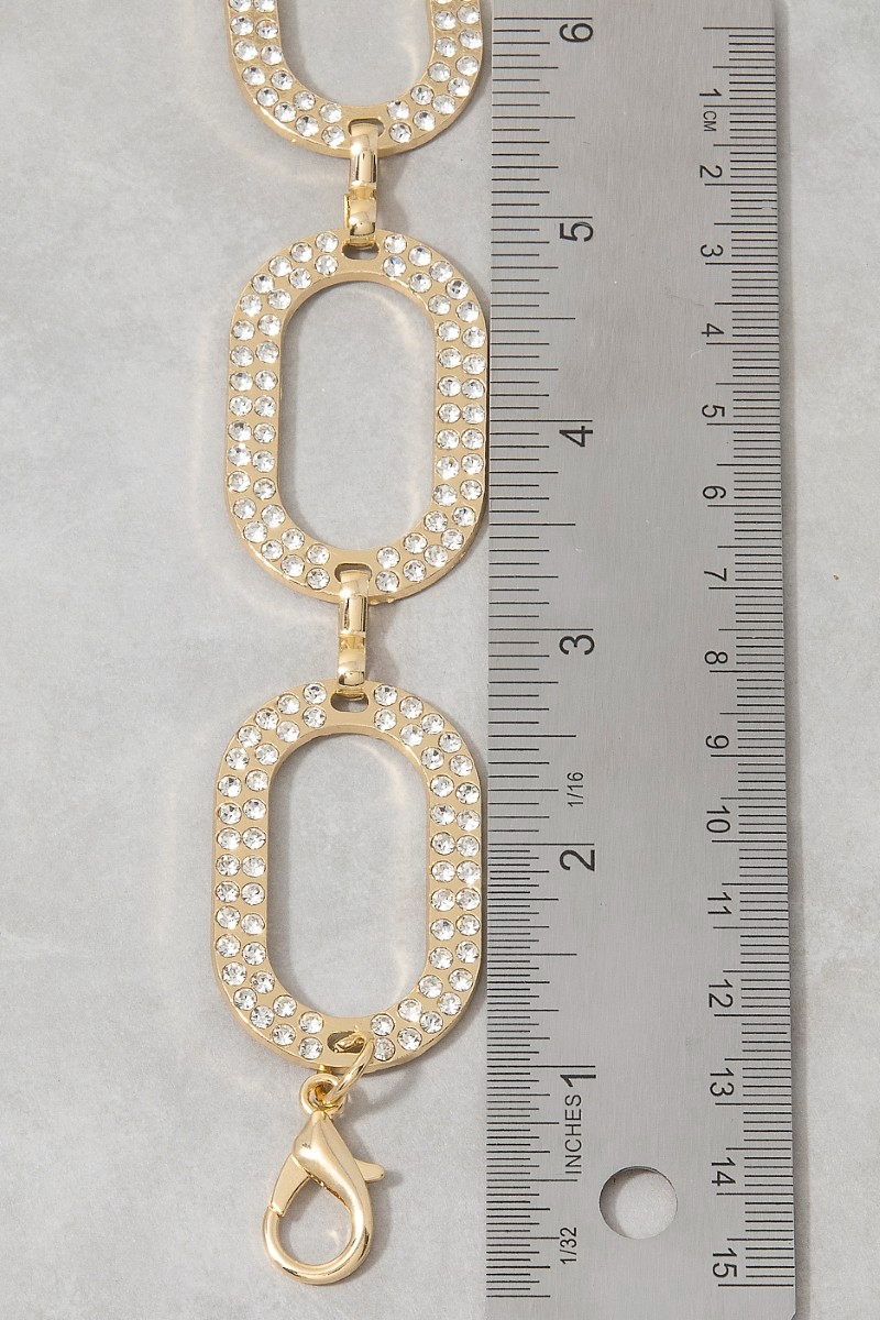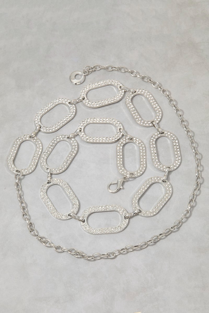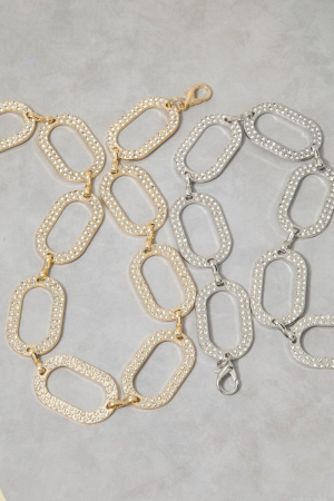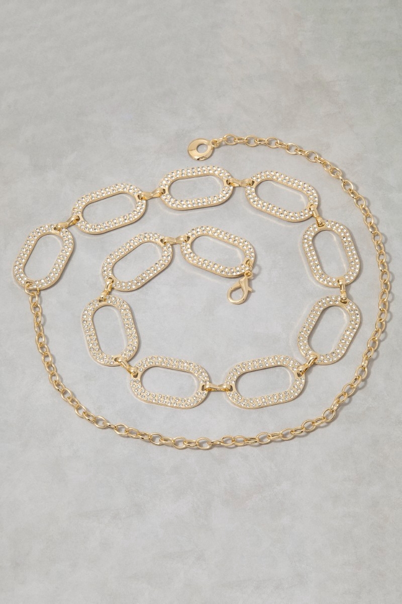 - This chain belt introduces a unique gold cubic zirconia pave open rectangle link style. Delight in the intricate details that make this chain belt an essential element in expressing your fashion identity.