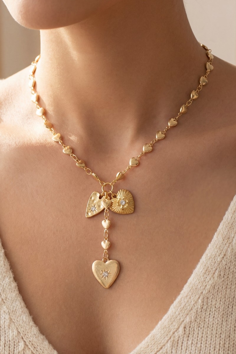 - This necklace displays a fashionable heart link chain cubic zirconia star heart charm style. Elevate your ensemble with this necklace that effortlessly captures the essence of refined fashion.