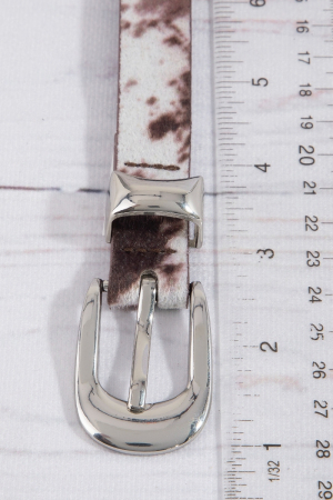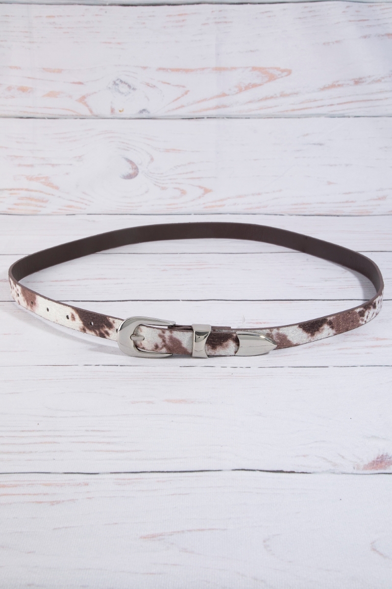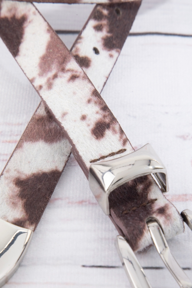 • This leather belt brings a unique cow hide western style. Experience the joy of accessorizing with this piece that effortlessly combines versatility and charm.