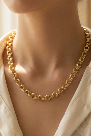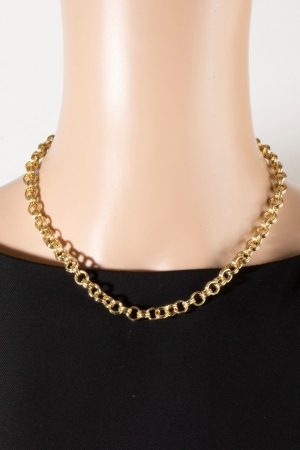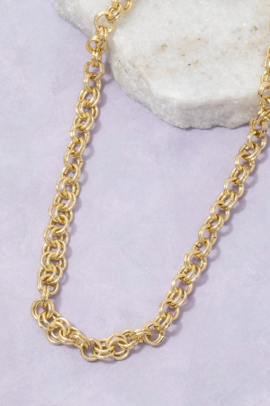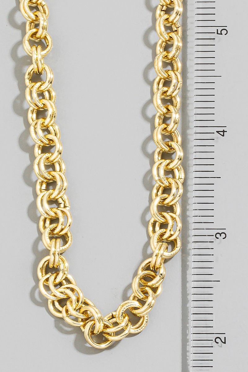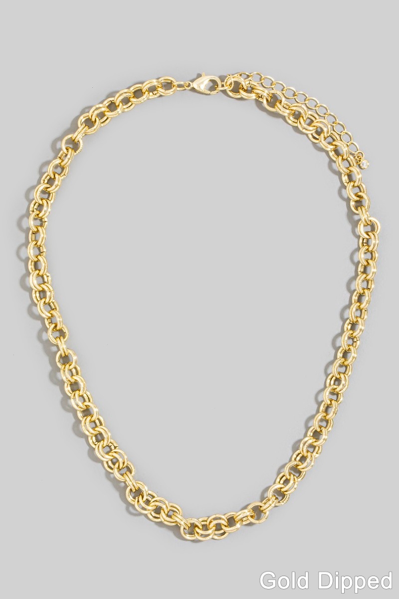 • This chain necklace showcases a timeless double rolo chain gold dipped style. Elevate your ensemble with this chic, timeless chain necklace.