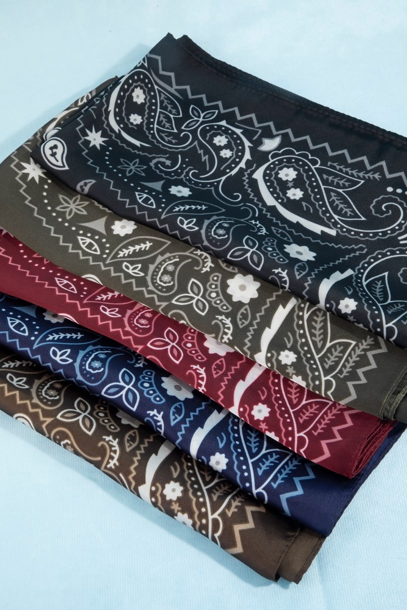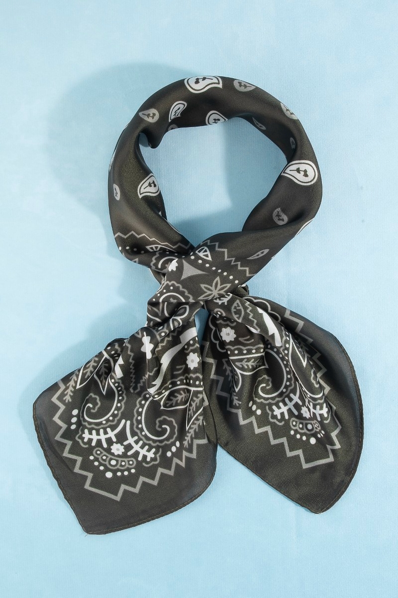 - This scarf adds a modern bandana paisley print satin square style. Celebrate individuality with this scarf that effortlessly expresses your unique sense of style.
