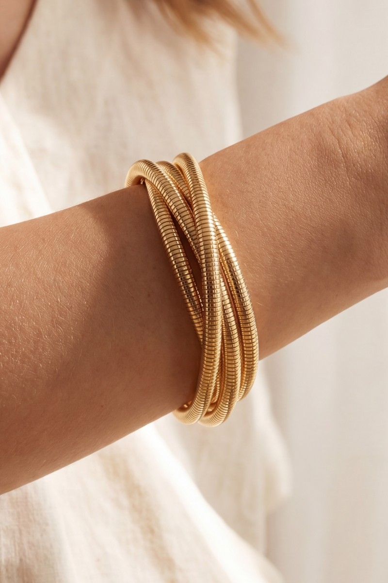 - This chain bracelet showcases a timeless interlocking snake chain bangle set style. Elevate your ensemble with this chic, timeless chain bracelet.