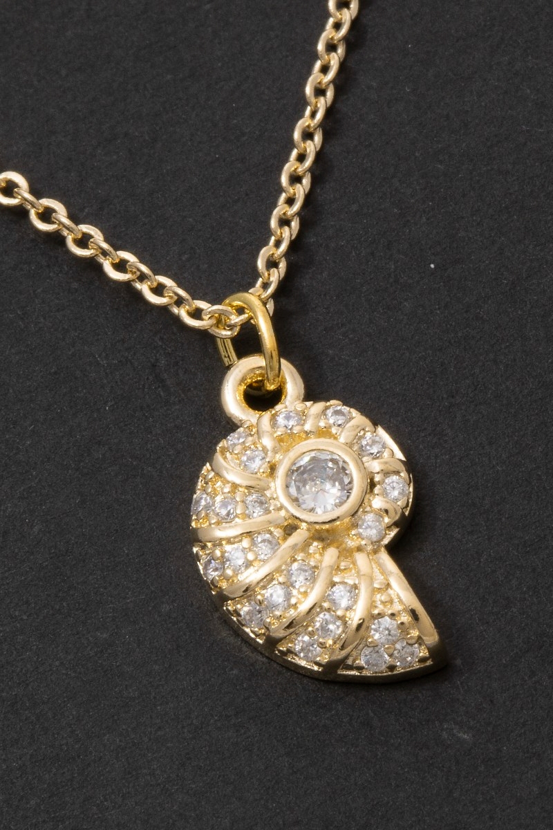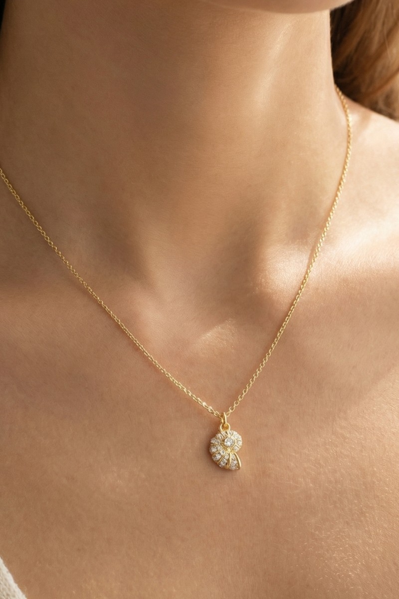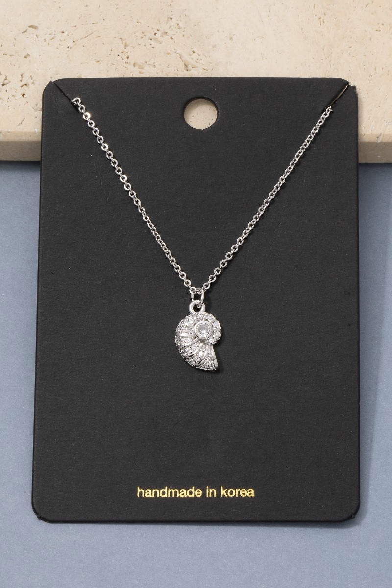 • This chain necklace showcases a timeless cz seashell pendant style. Witness the perfect fusion of style and functionality as this chain necklace effortlessly complements your lifestyle.