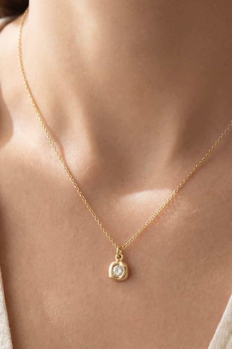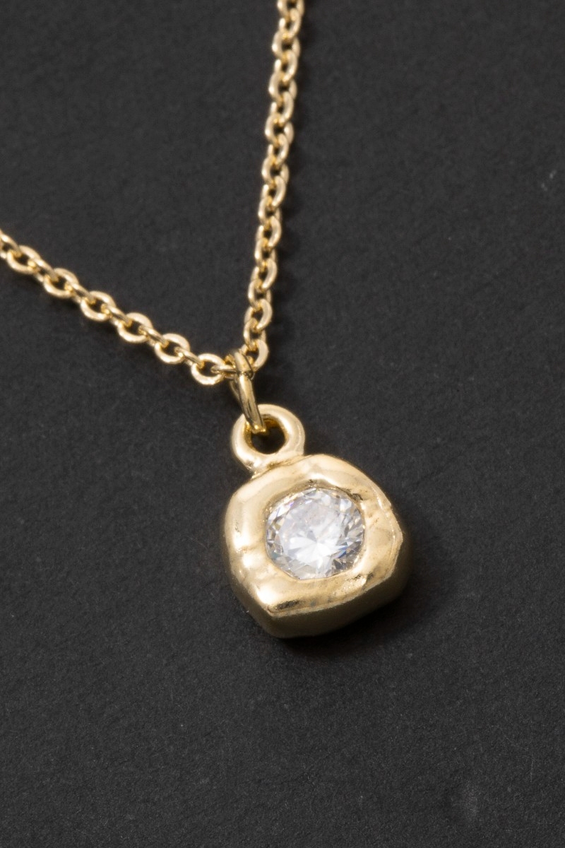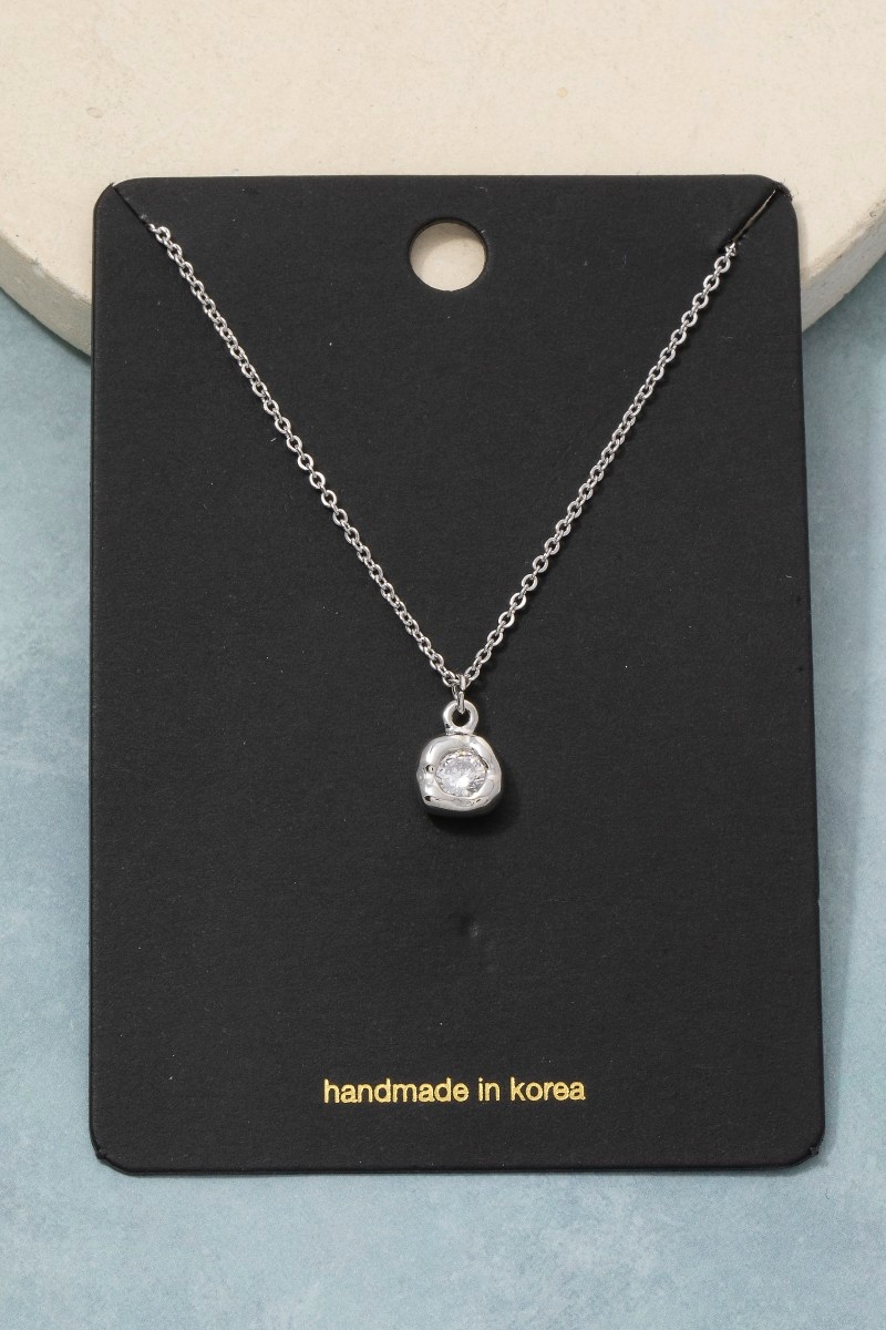 - This pendant necklace showcases a unique molten cubic zirconia round style. Unveil a new dimension of sophistication as this pendant necklace effortlessly enhances the elegance of your ensemble.