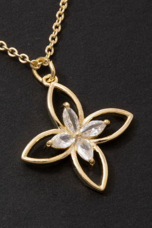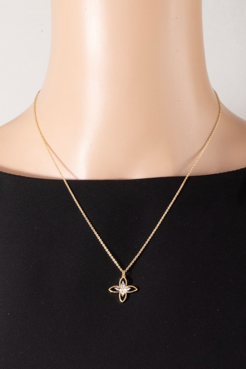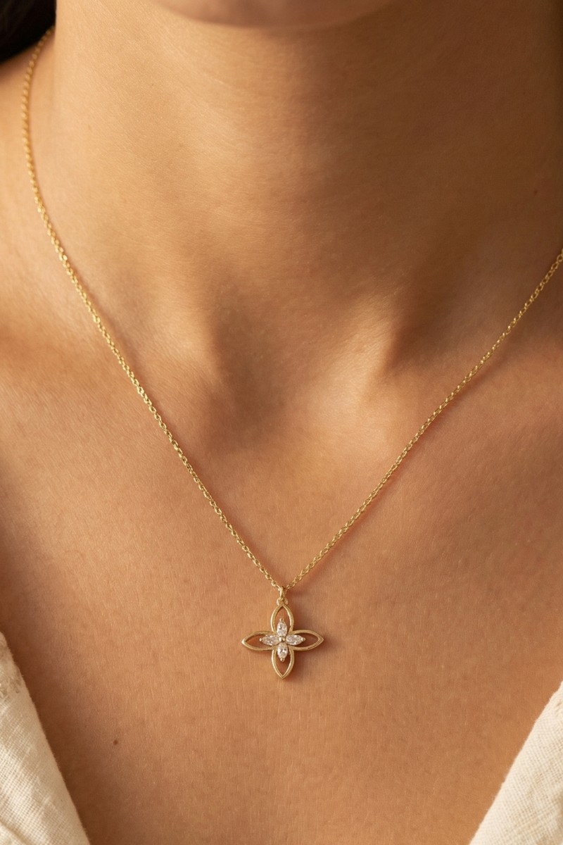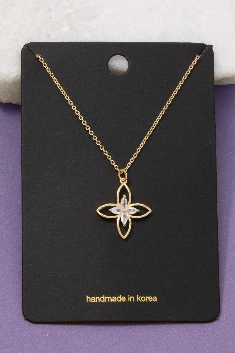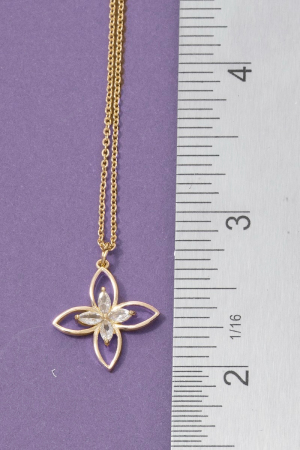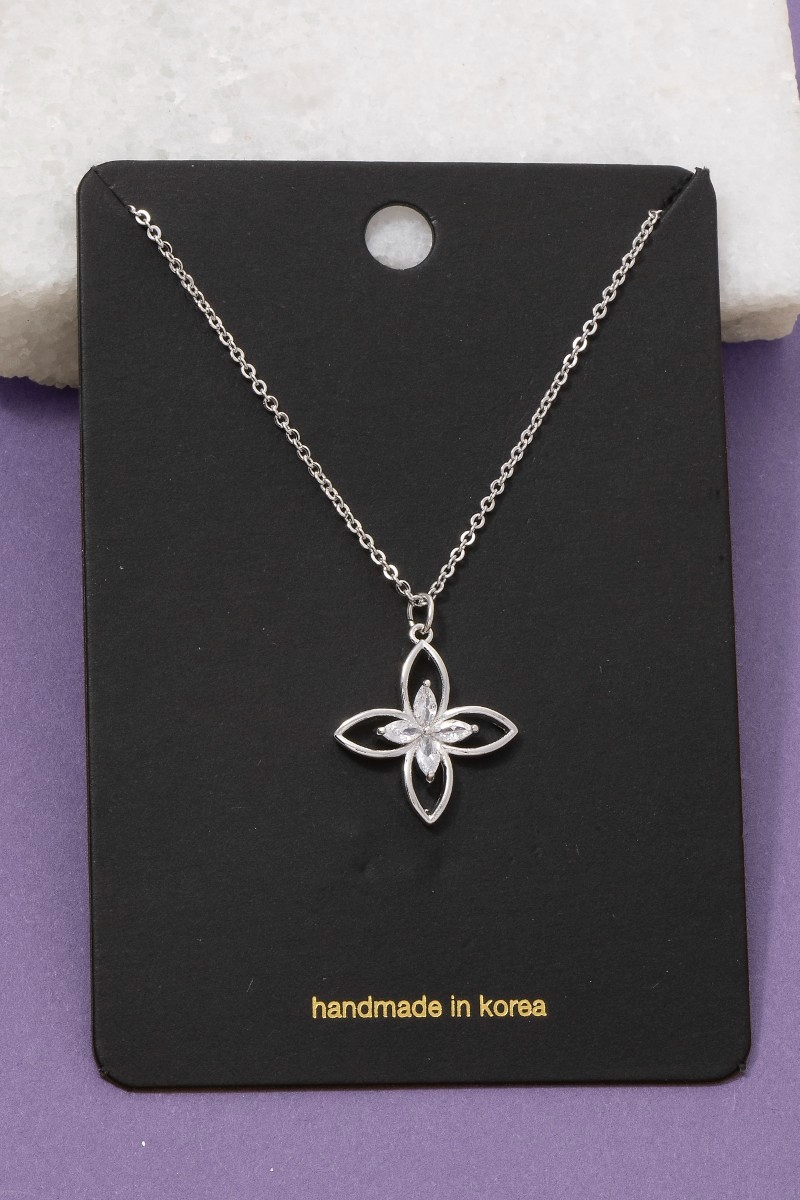 - This pendant necklace introduces a unique cz four petal flower style. Indulge in the allure of exquisite craftsmanship as this pendant necklace effortlessly adds a touch of luxury to your attire.