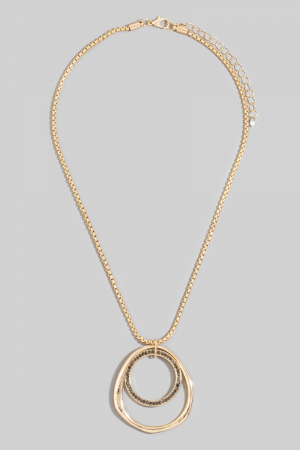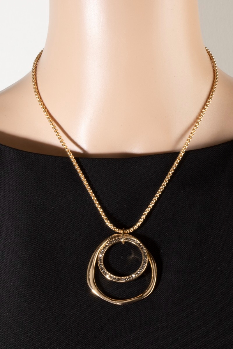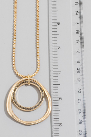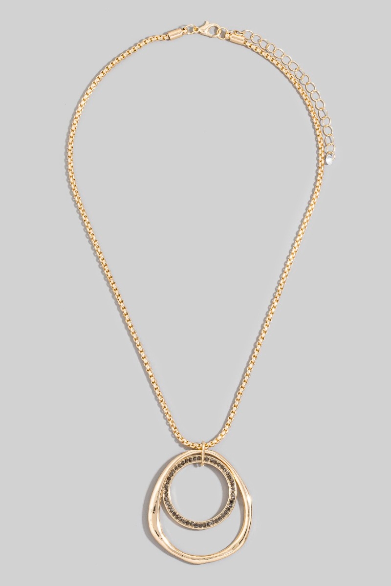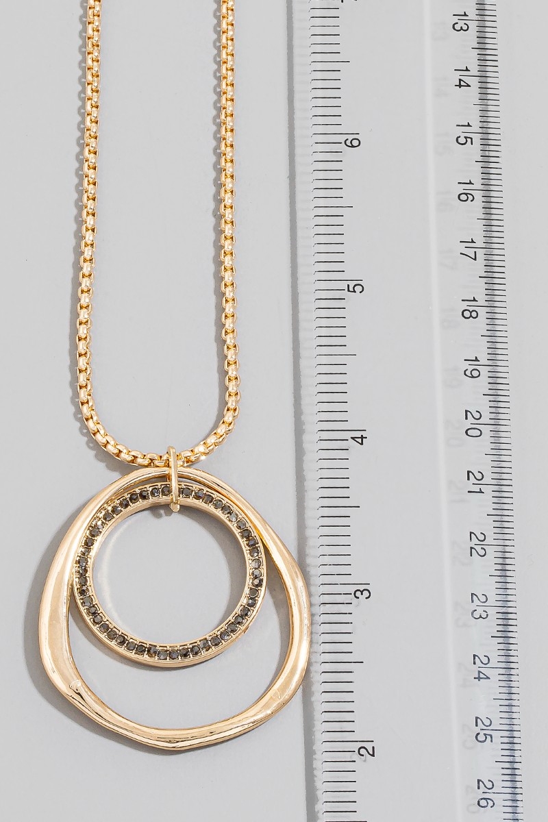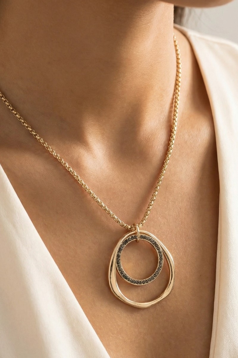 • This pendant necklace introduces a stunning gold double circle long style. Explore a refined sense of style with this pendant necklace, seamlessly elevating the chic factor of your look.