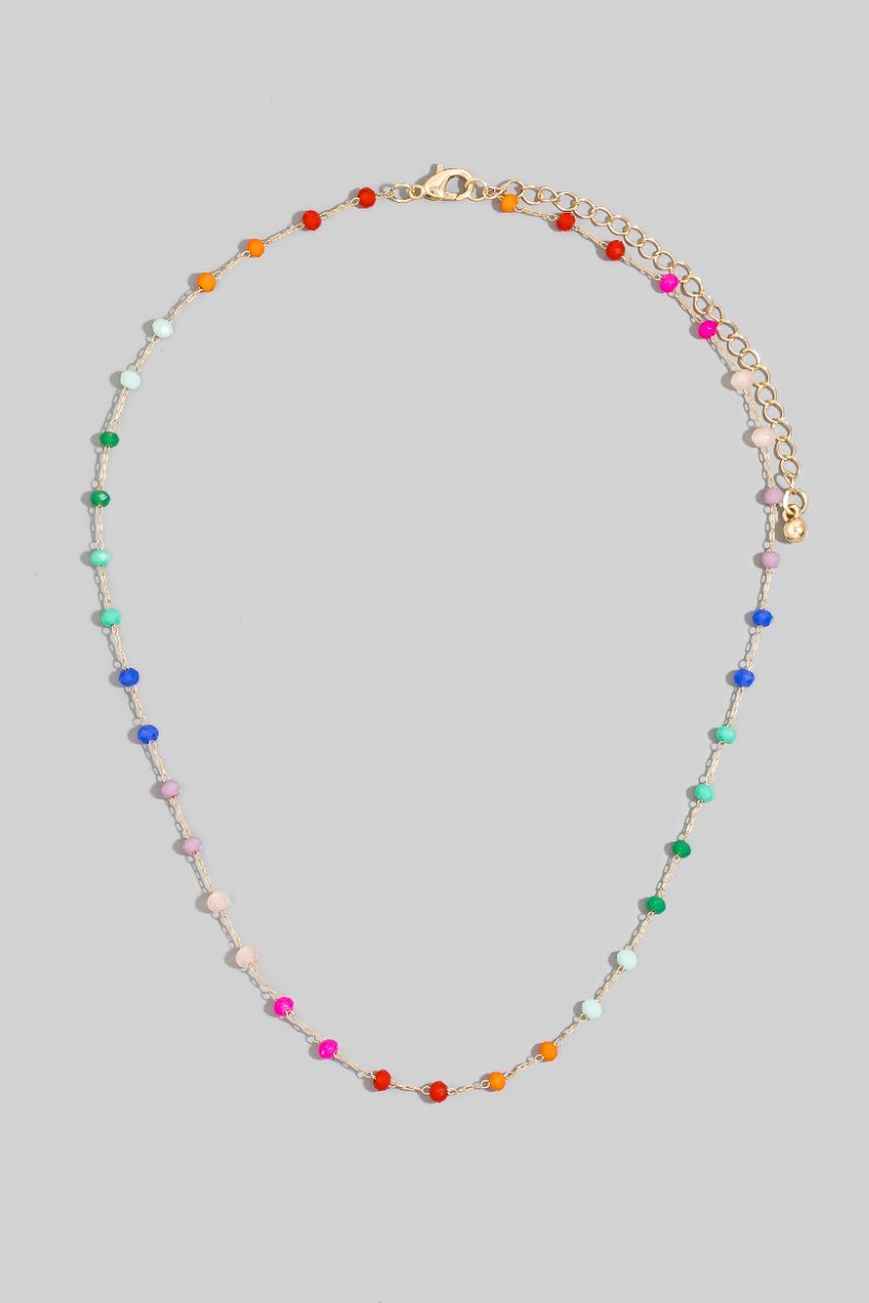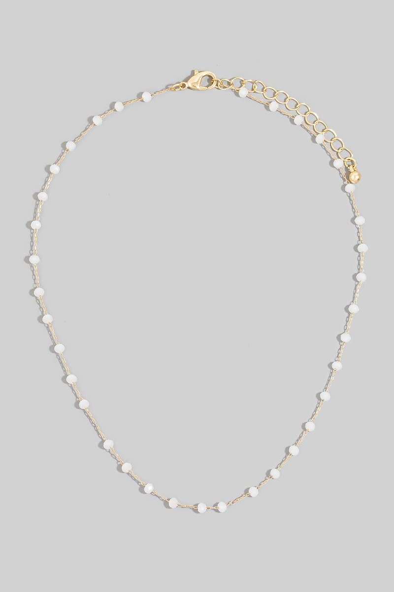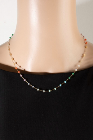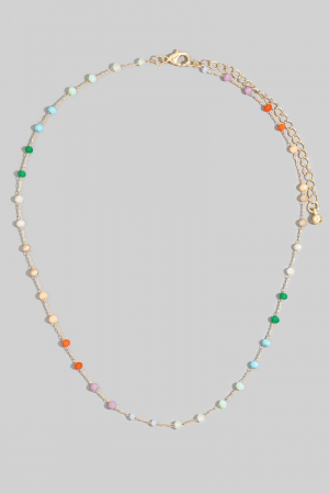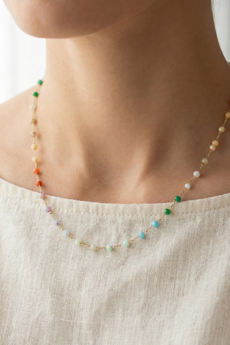 - This chain necklace showcases a unique assorted dainty bead station style. Delight in the intricate details that make this chain necklace an essential element in expressing your fashion identity.