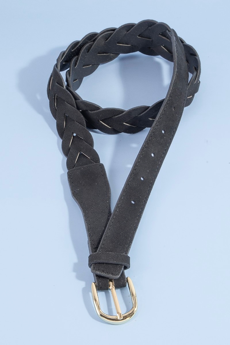 - This leather belt adds a modern braided vegan gold buckle style. Embark on a journey of sartorial refinement as this leather belt effortlessly complements your fashion sense.