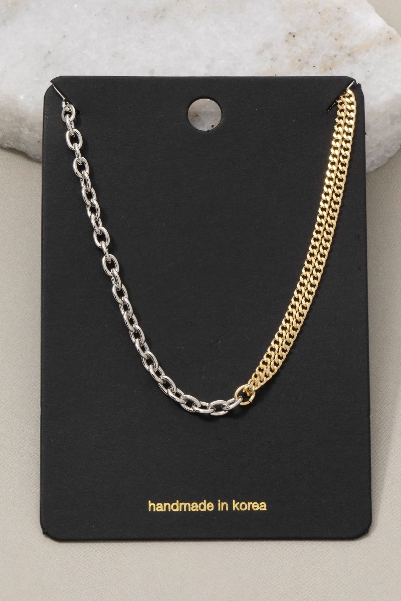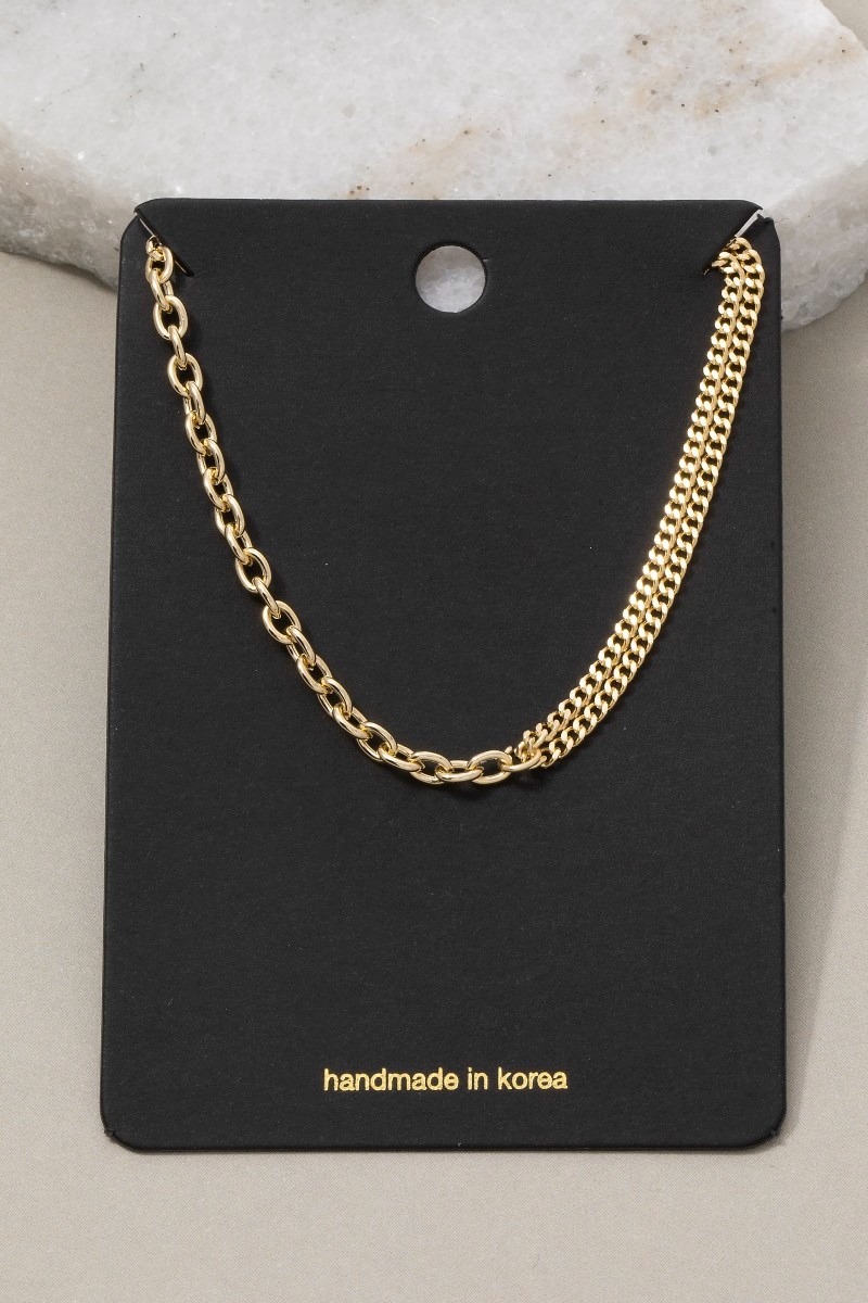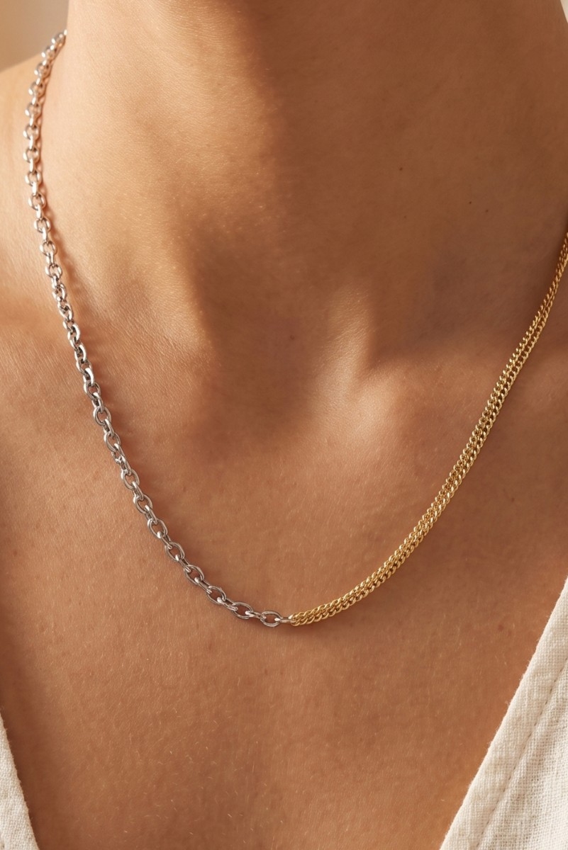 - This chain necklace displays a fashionable cable and curb dual style. Unveil modern elegance with this subtly intricate chain necklace.