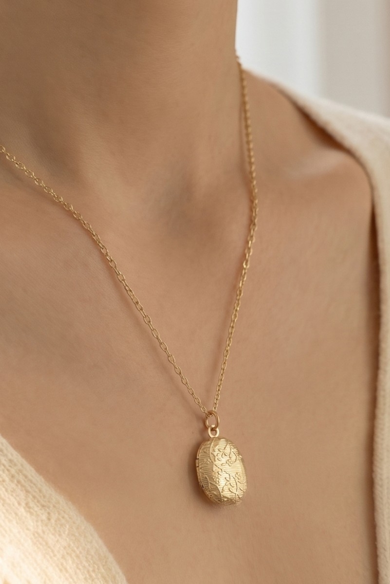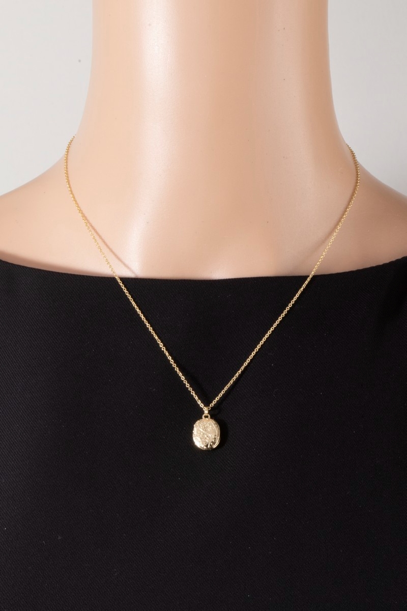 - This pendant necklace showcases a timeless textured oval medallion style. Celebrate individuality with this pendant necklace that effortlessly expresses your unique sense of style.