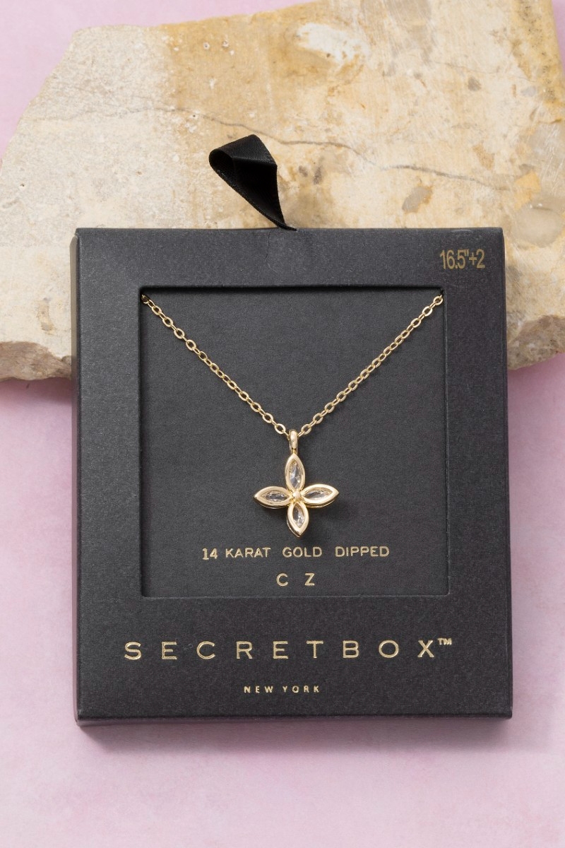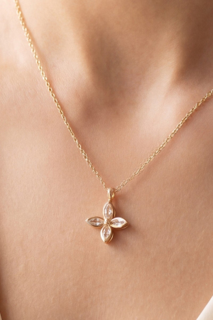 - This necklace brings a luxurious 14k gold dipped cubic zirconia marquise flower style. Delight in the intricate details that make this necklace an essential element in expressing your fashion identity.