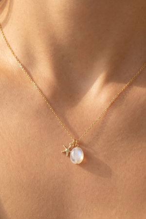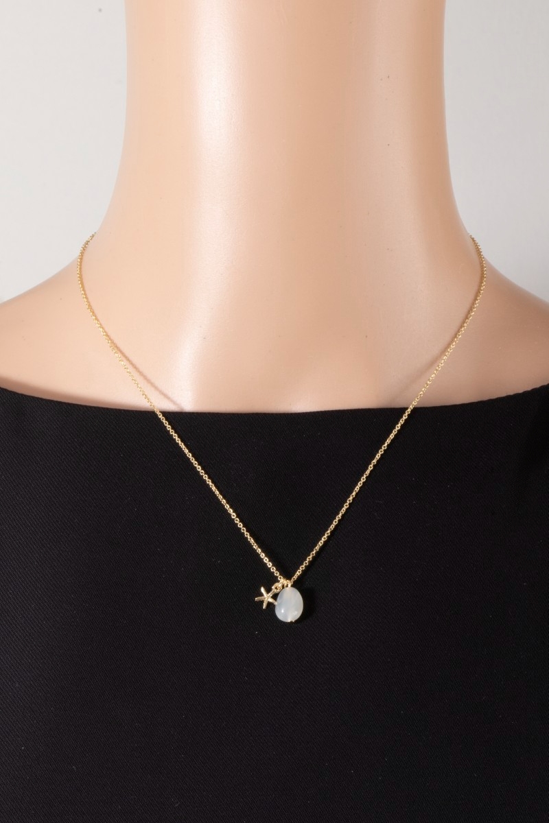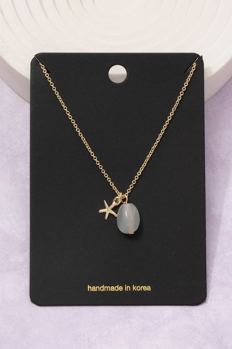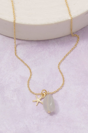 • This pendant necklace displays a vibrant starfish and stone charm style. Immerse yourself in the world of understated glamour as this pendant necklace effortlessly exudes timeless appeal.