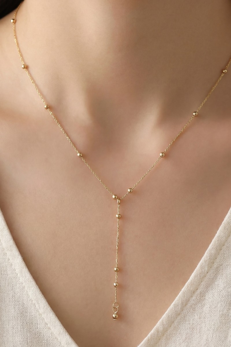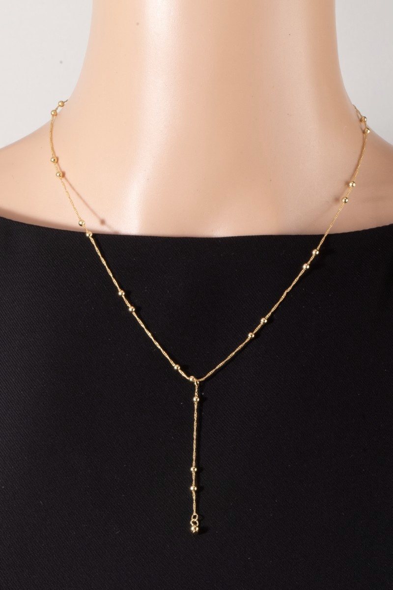 • This chain belt showcases a unique ball station y-lariat necklace style. Experience a burst of creativity in accessorizing as this piece effortlessly sets the tone for your unique style.