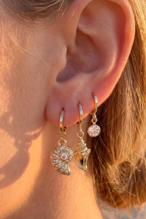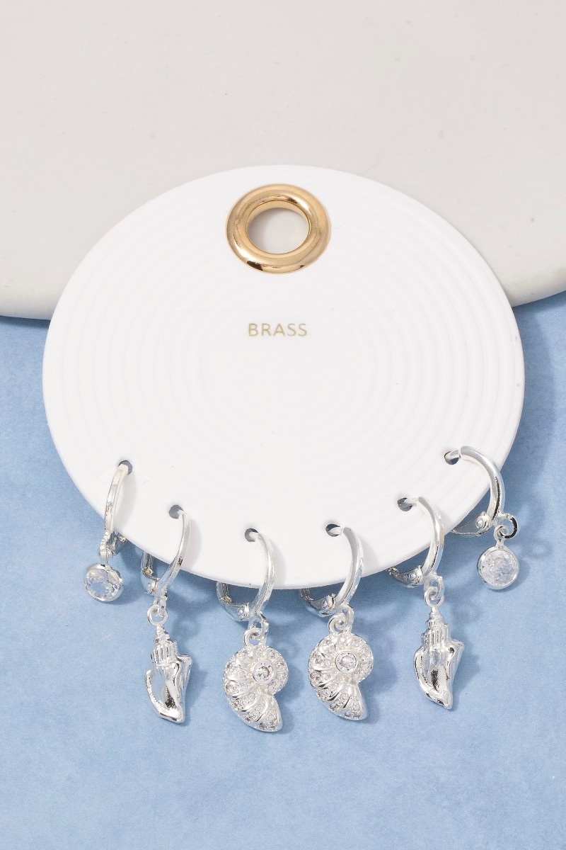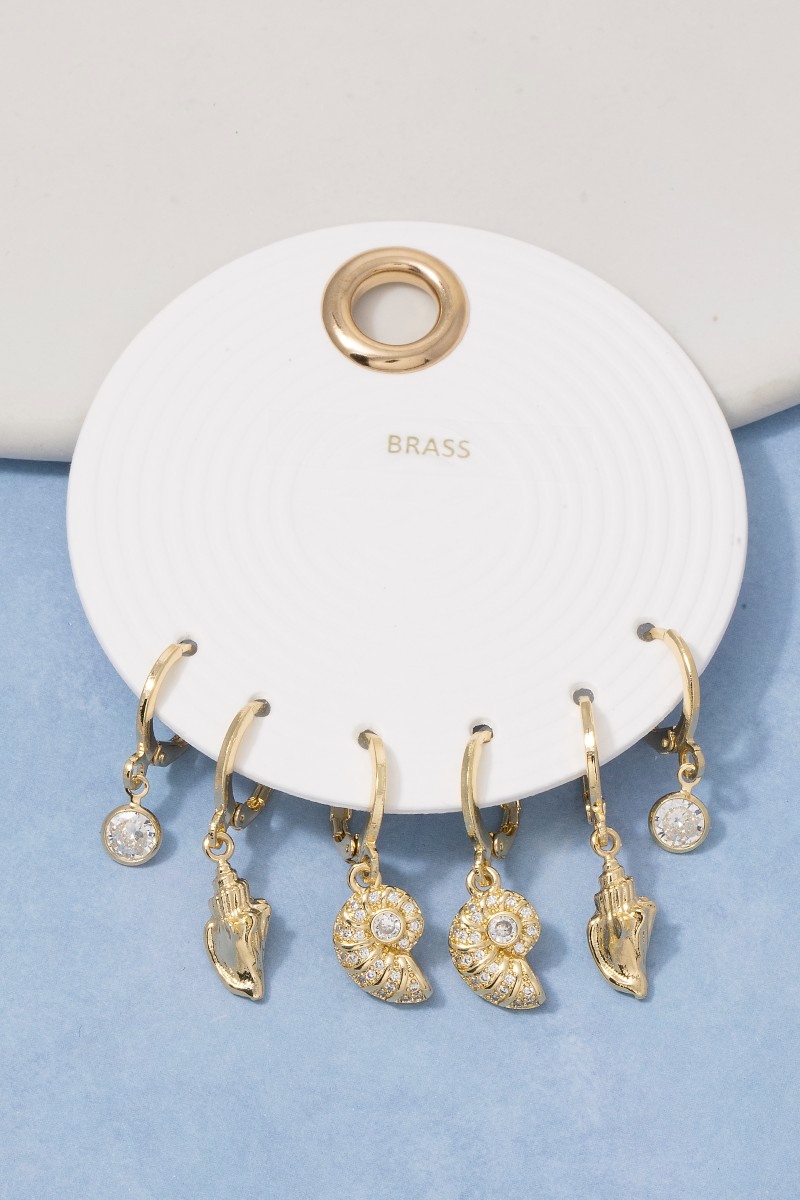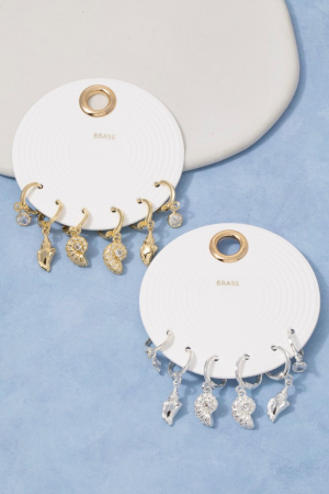 • This pair of earrings brings a luxurious cz hamsa and shell charm hoop earring set style. Elevate your ensemble with this chic, timeless pair of earrings.