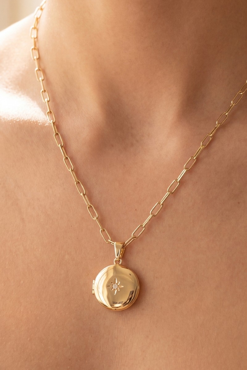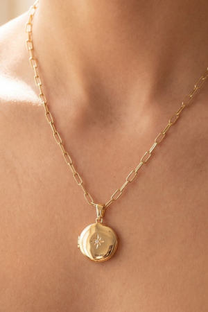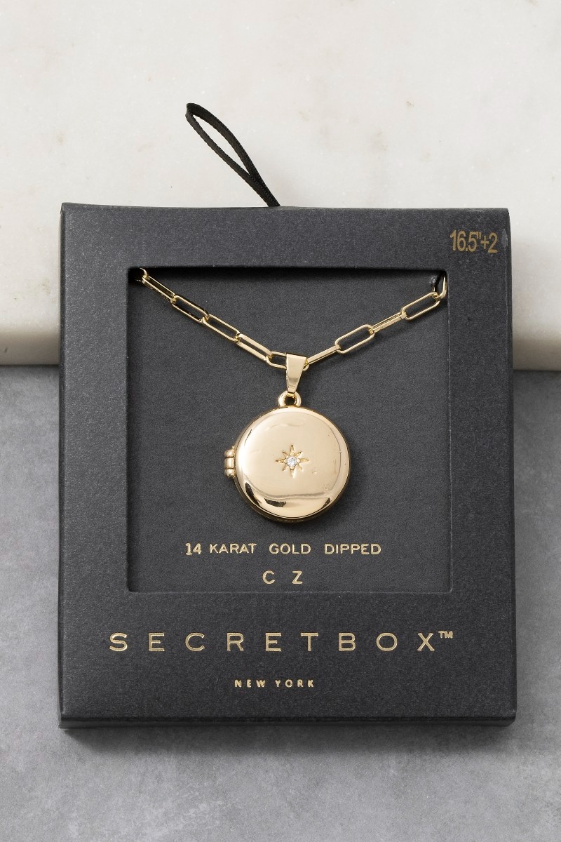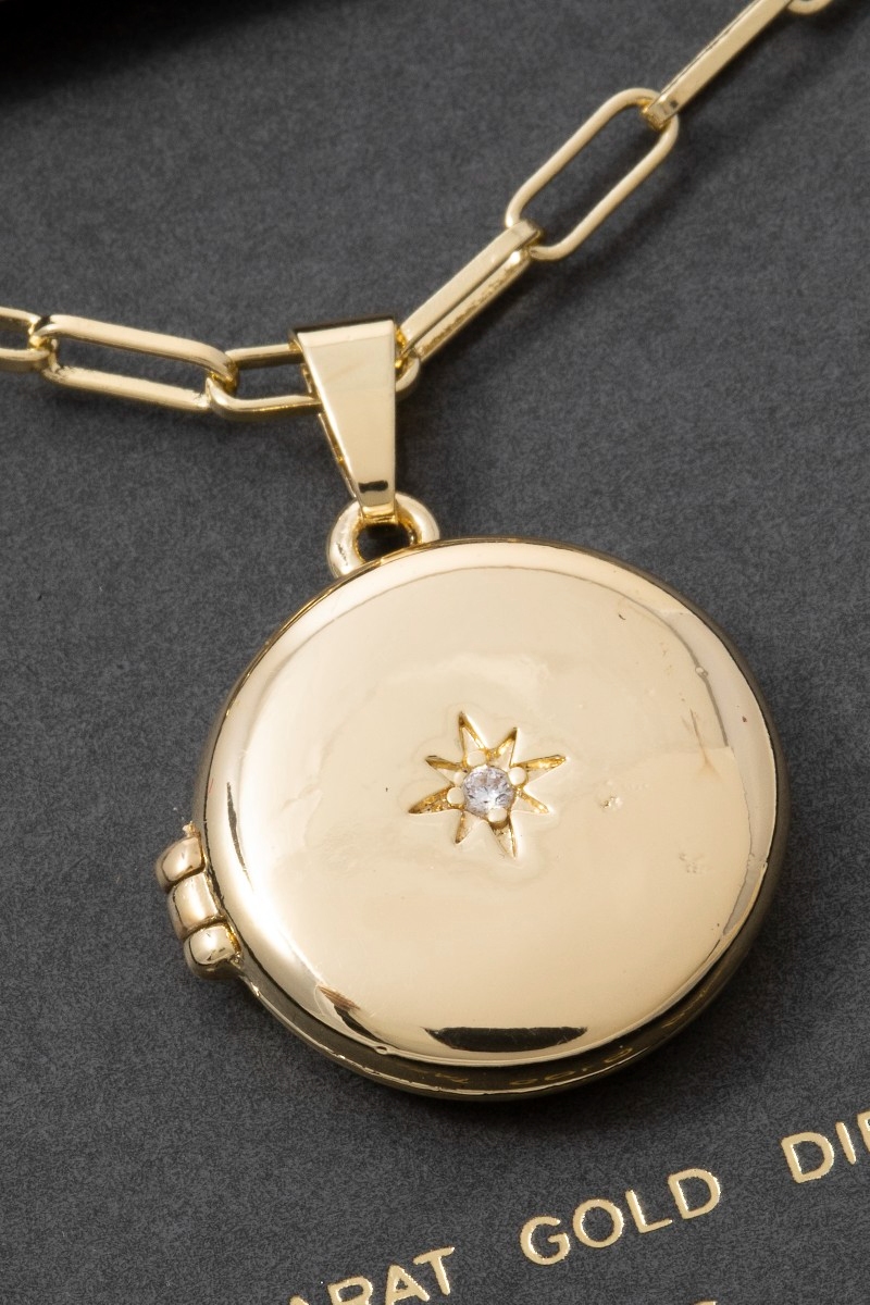 - This necklace brings a stunning 14k gold dipped cubic zirconia starburst locket style. Experience the joy of accessorizing with this piece that effortlessly combines versatility and charm.