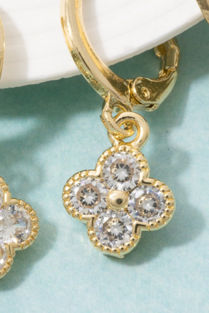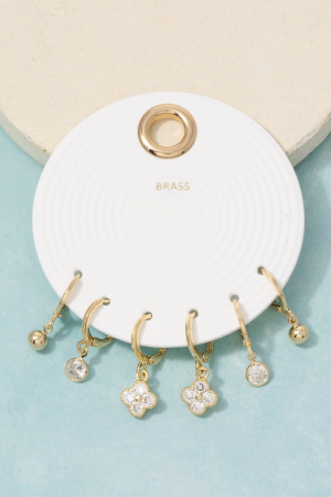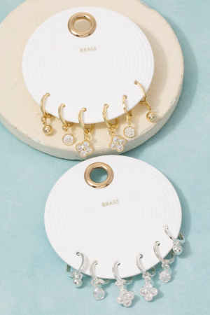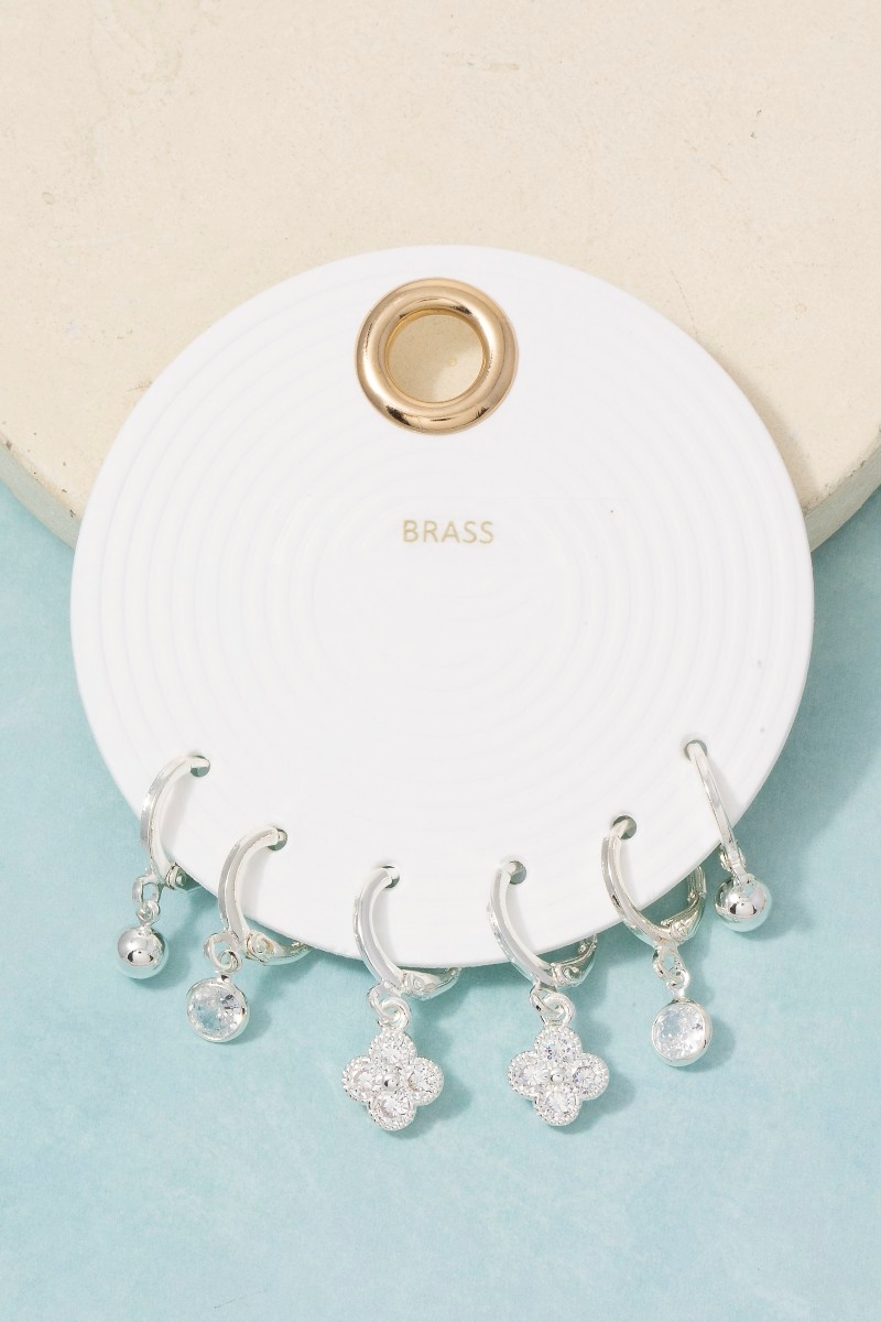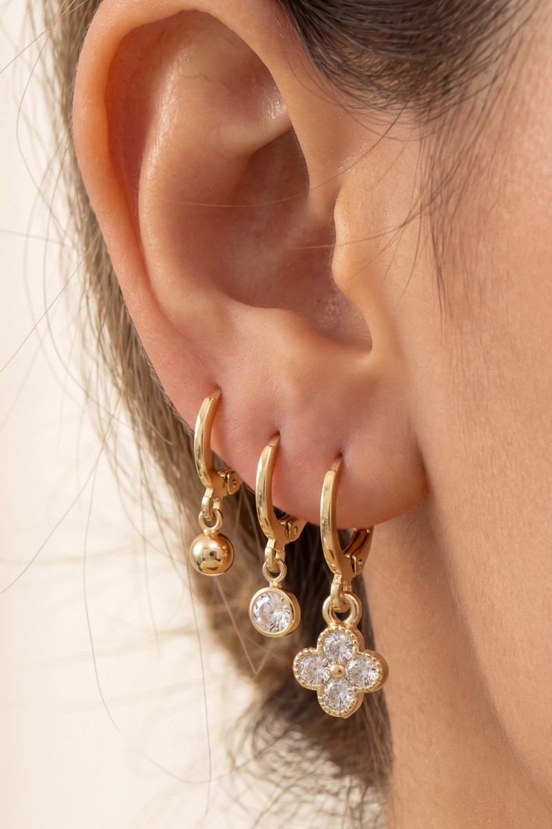 • This pair of earrings introduces a unique cz clover and ball charm hoop earring set style. Redefine your look effortlessly with this standout, on-trend piece.