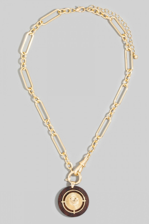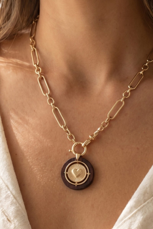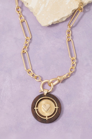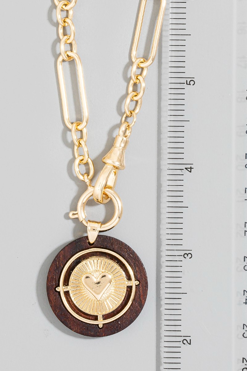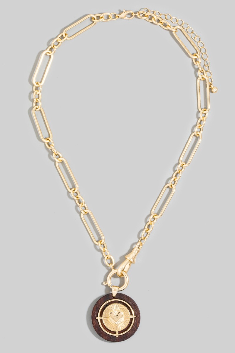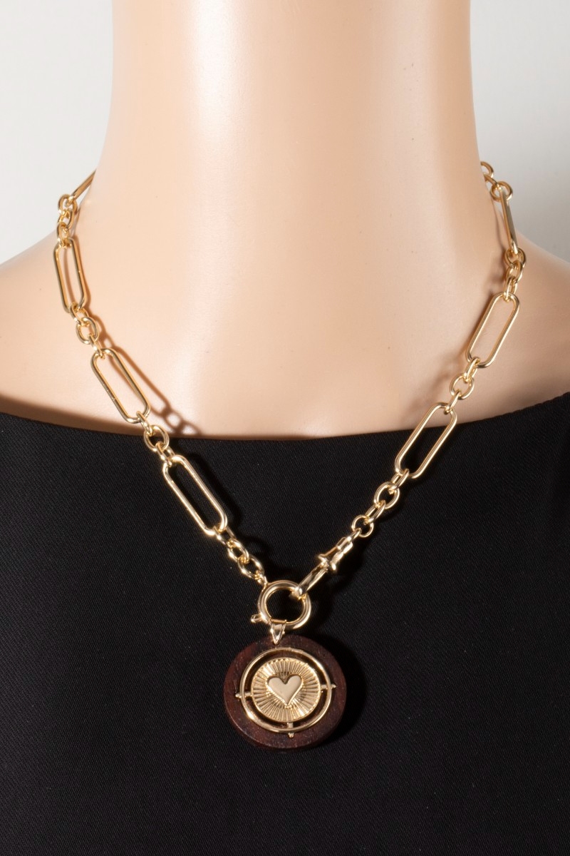 • This necklace brings a unique paperclip chain wood heart coin style. Immerse yourself in the details of design, as this necklace effortlessly becomes a conversation starter.