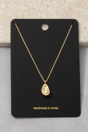 • This pendant necklace brings a luxurious organic teardrop style. Elevate your ensemble with this pendant necklace that effortlessly captures the essence of refined fashion.