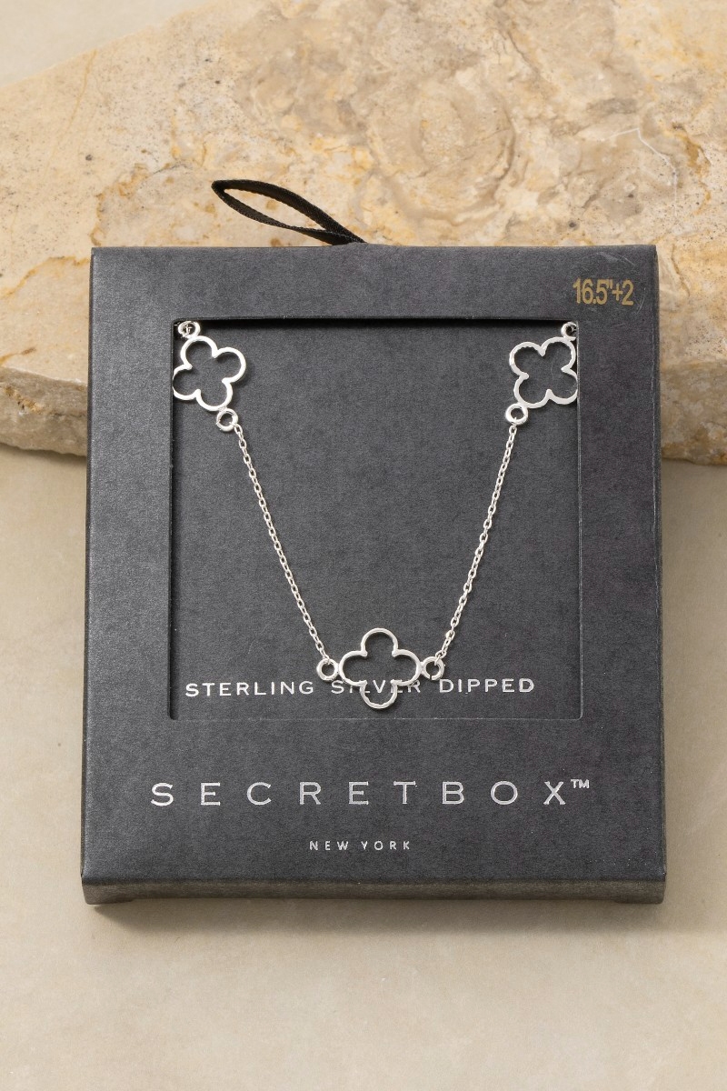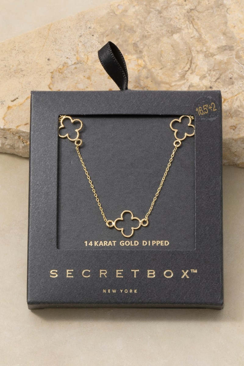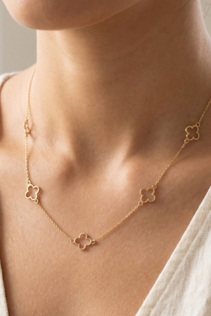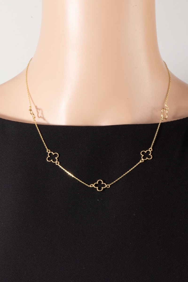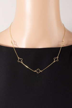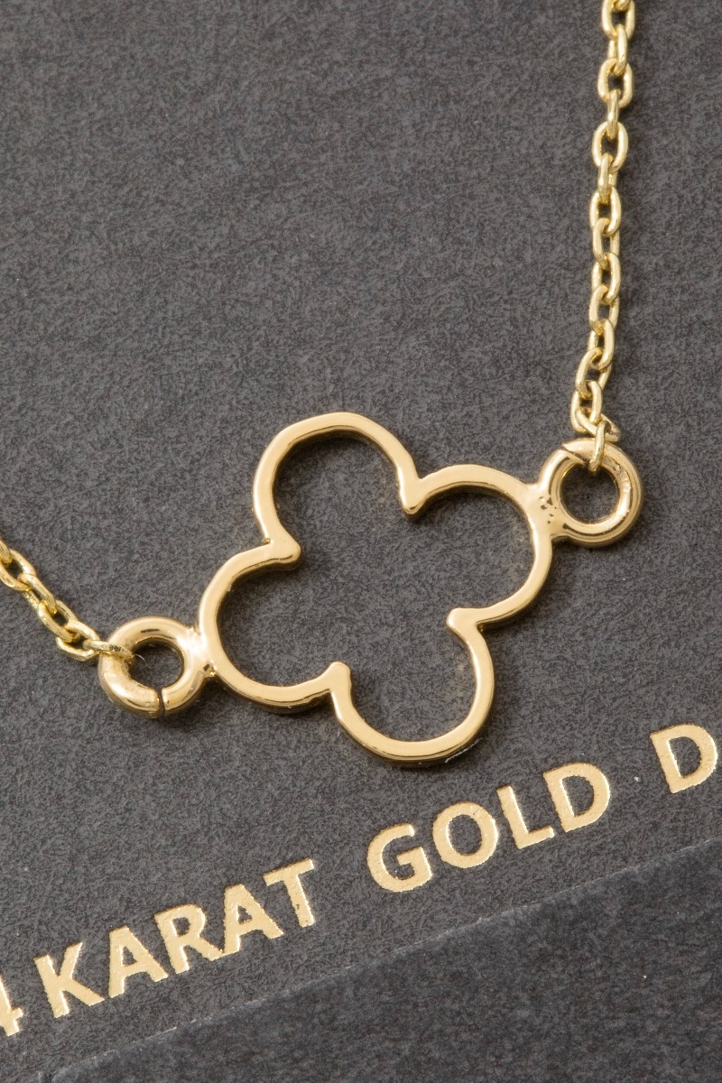 • This necklace showcases a unique 14k gold dipped open clover station style. Delight in the nuanced details that make this necklace a testament to fine design and impeccable taste.