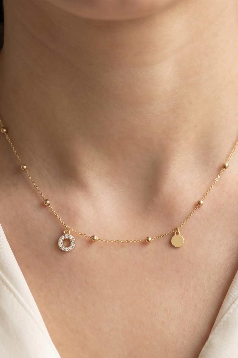 • This chain necklace features a fashionable cz circle disc station style. Embark on a journey of sartorial refinement as this chain necklace effortlessly complements your fashion sense.