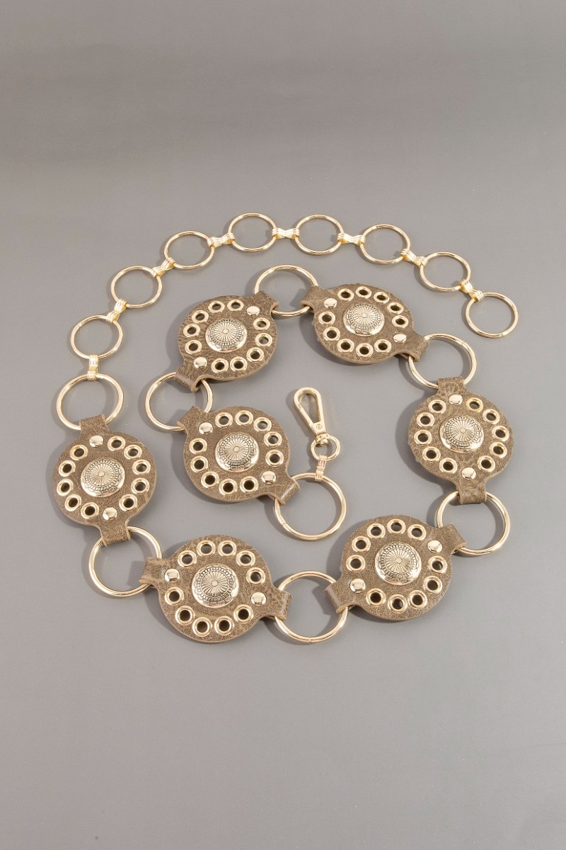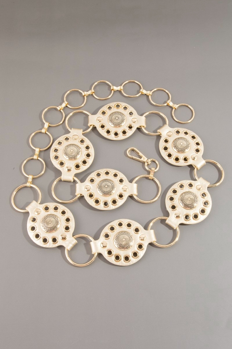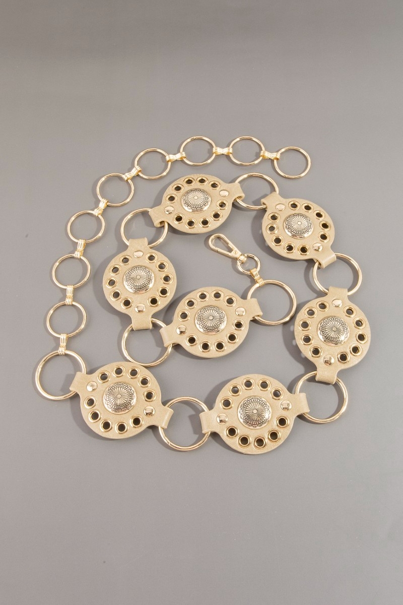 Gold Sun Concho Ring Chain Belt