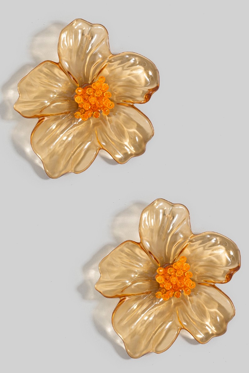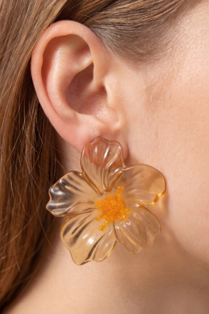 - This pair of stud earrings brings a stunning large resin flower style. Explore a refined sense of style with this pair of stud earrings, seamlessly elevating the chic factor of your look.