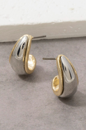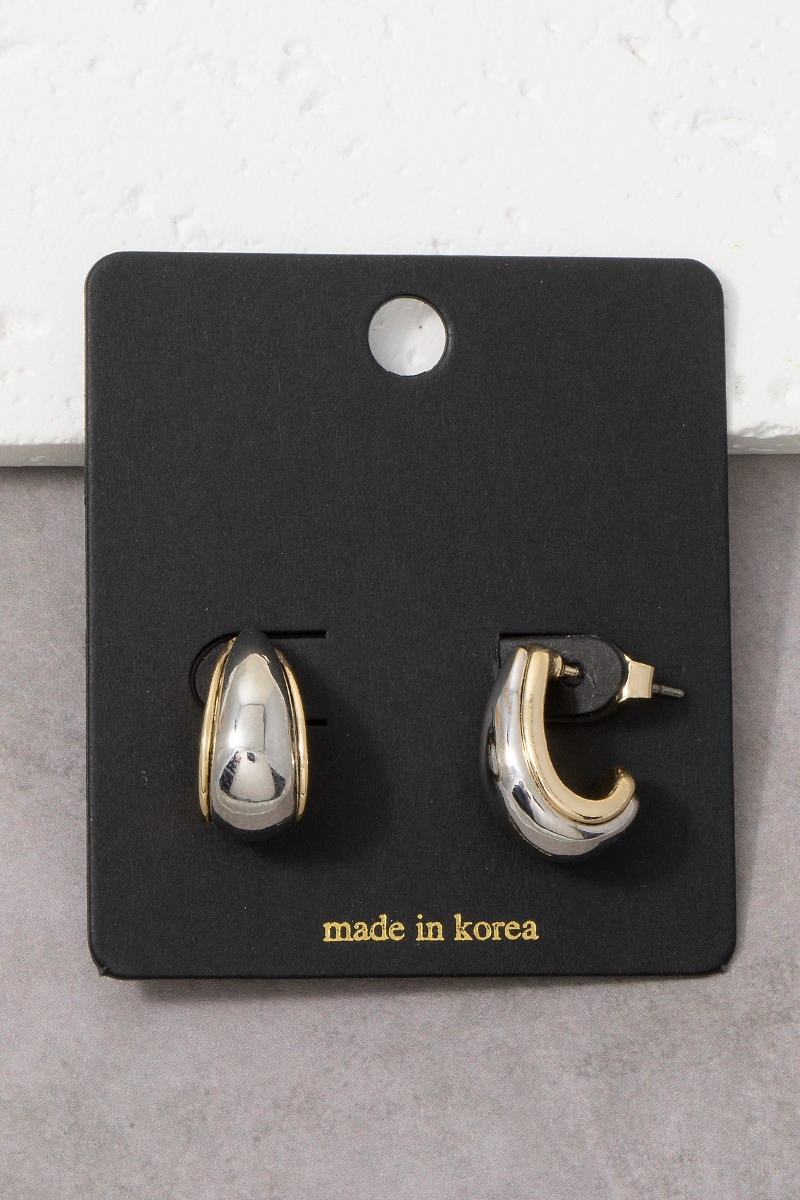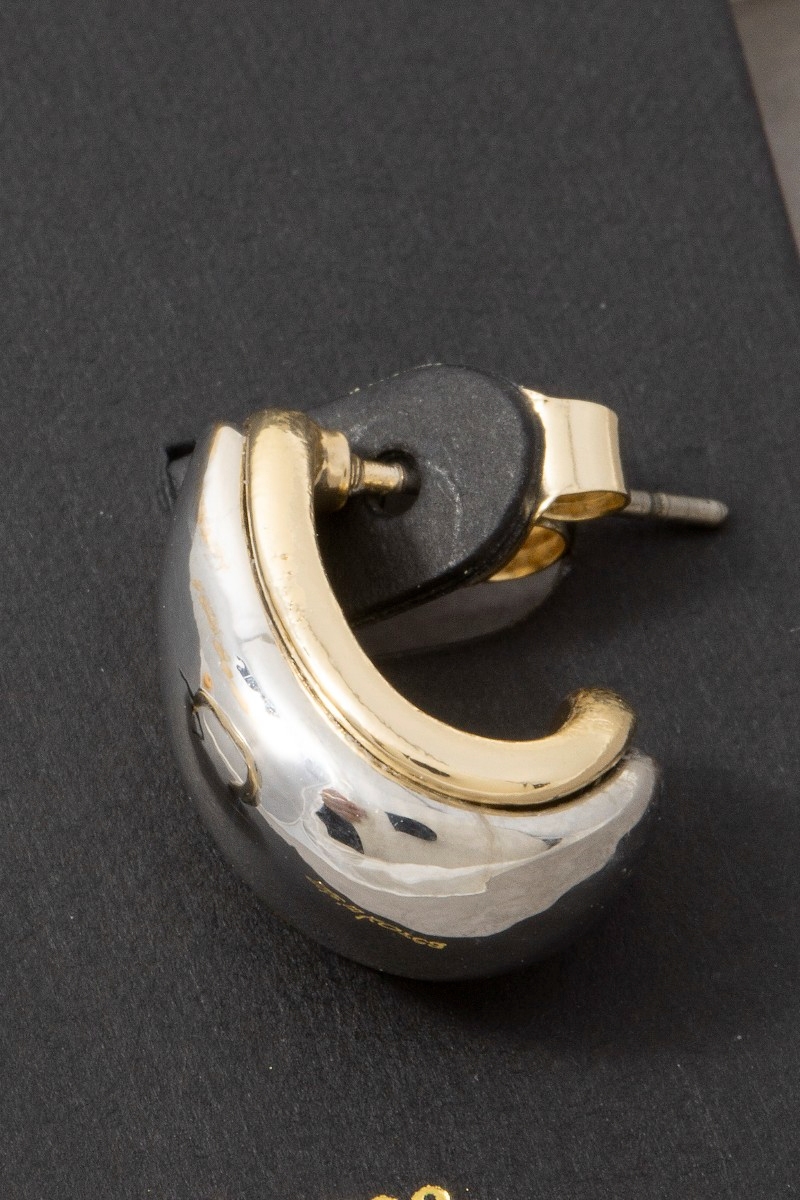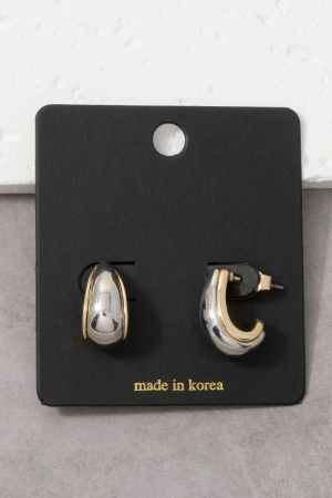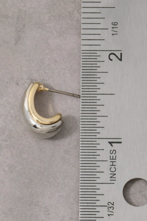 - This pair of hoop earrings adds a modern two-tone wide dome huggie style. Savor the allure of detailed craftsmanship in this exquisite pair of hoop earrings.