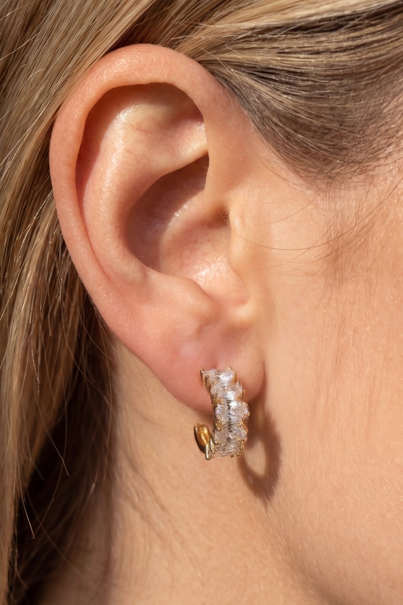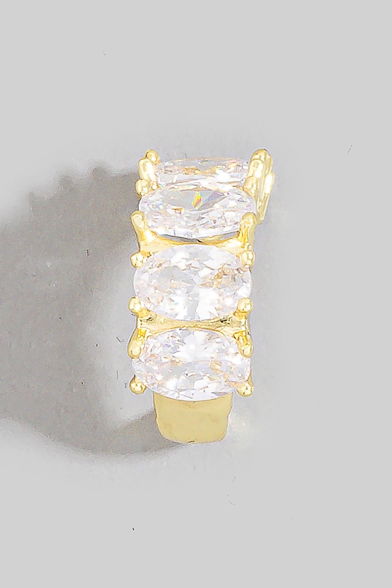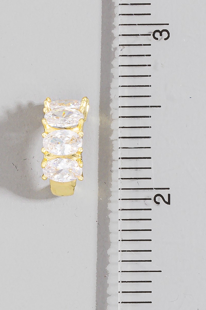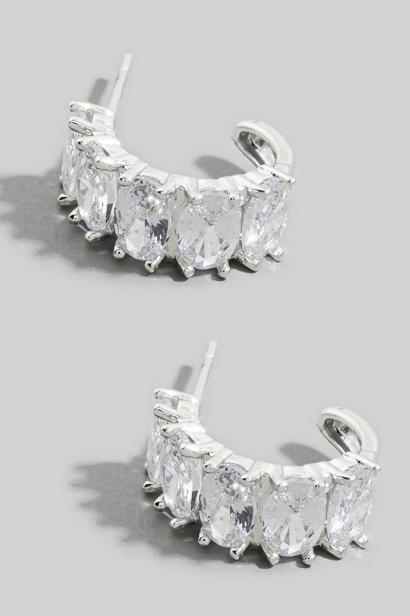 - This pair of hoop earrings brings a unique oval cubic zirconia tennis huggie style. Unveil modern elegance with this subtly intricate pair of hoop earrings.