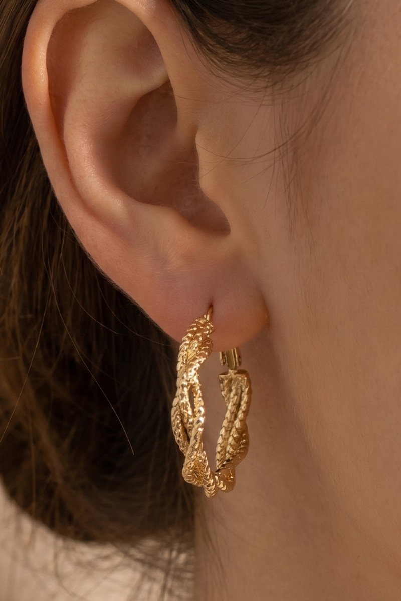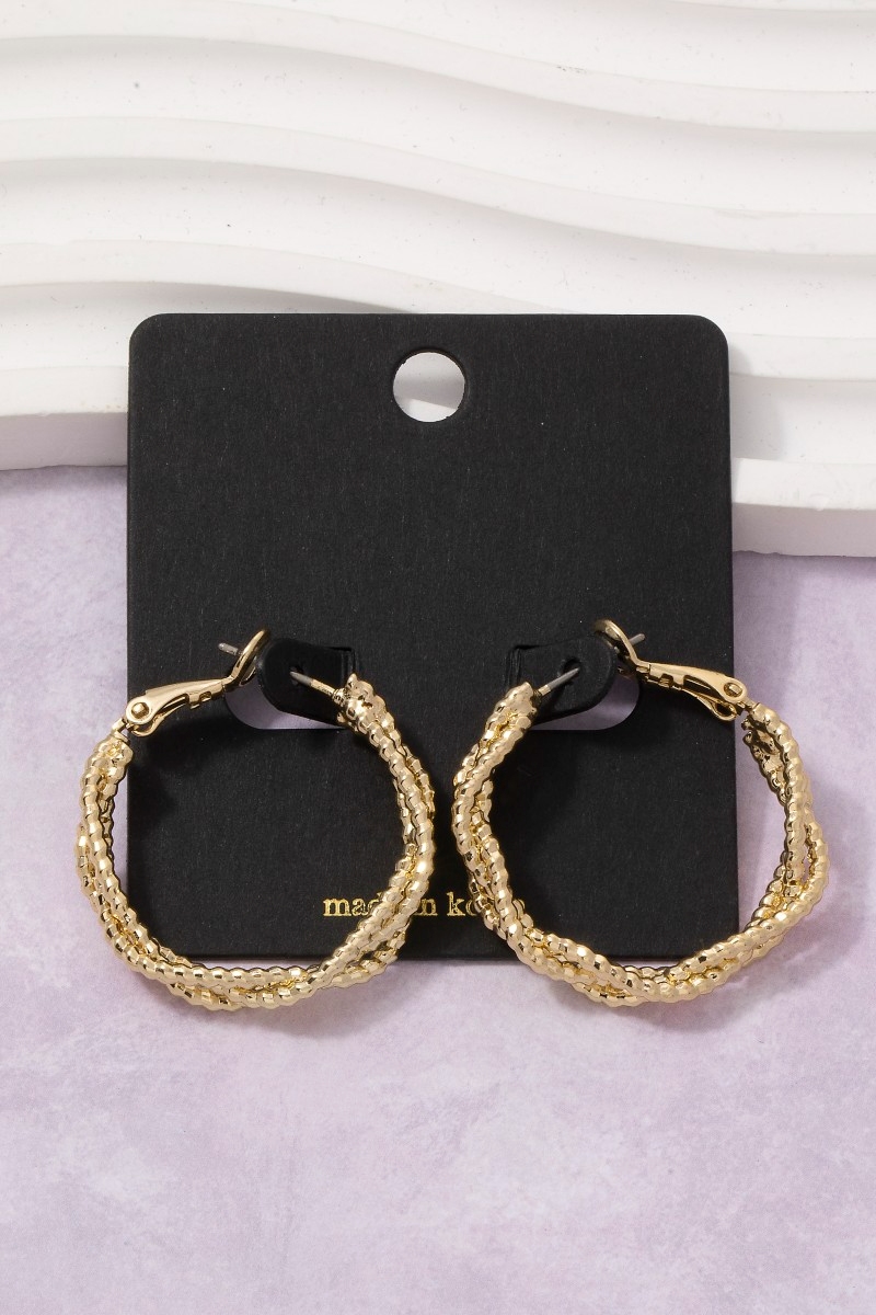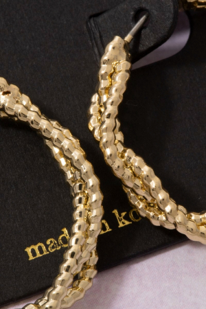 - This pair of hoop earrings showcases a unique faceted beaded twisted double-strand large style. Indulge in the allure of exquisite craftsmanship as this pair of hoop earrings effortlessly adds a touch of luxury to your attire.