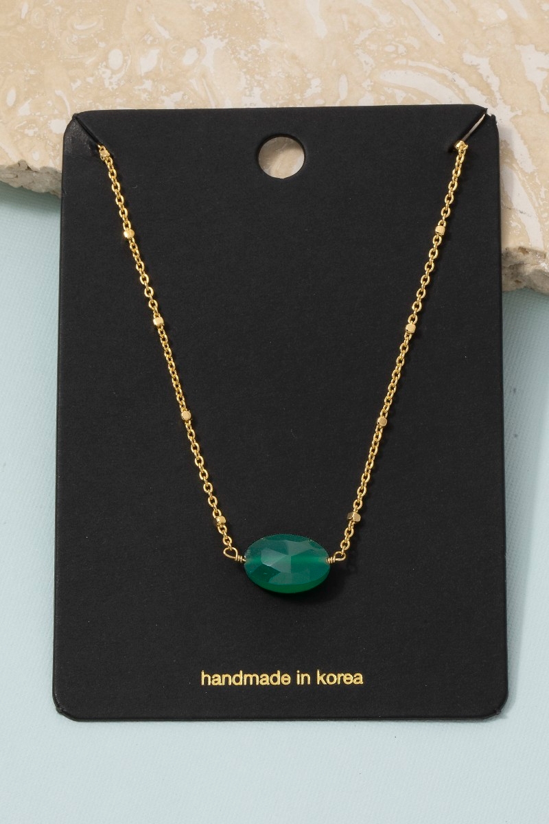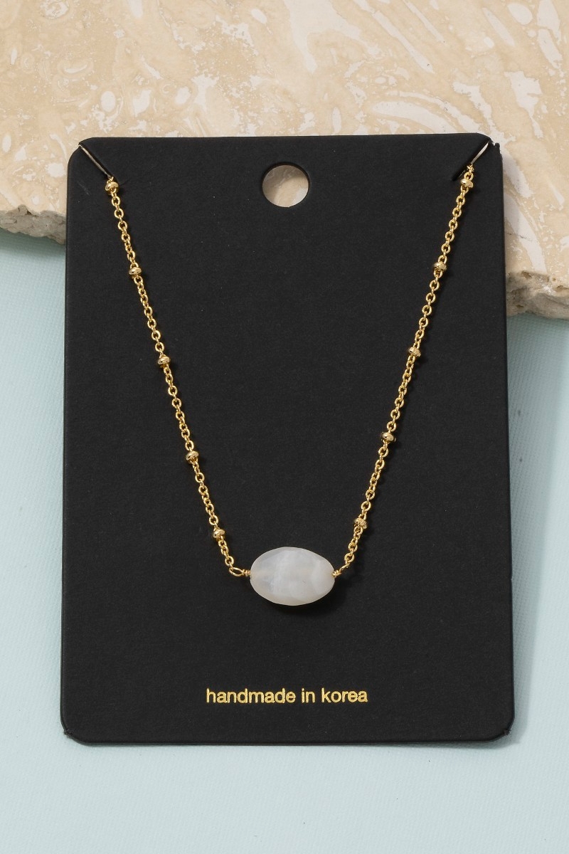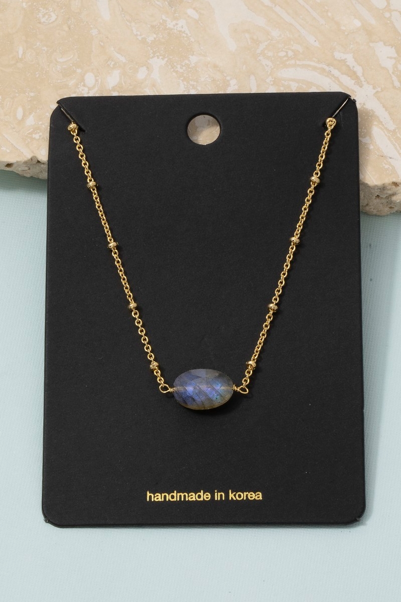 • This chain necklace brings a stunning single stone oval pendant satellite style. Step into a world of refined taste as this chain necklace effortlessly refines the details of your outfit.