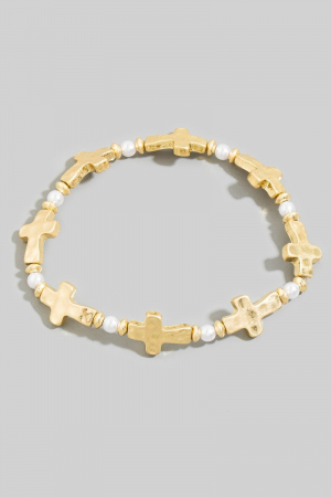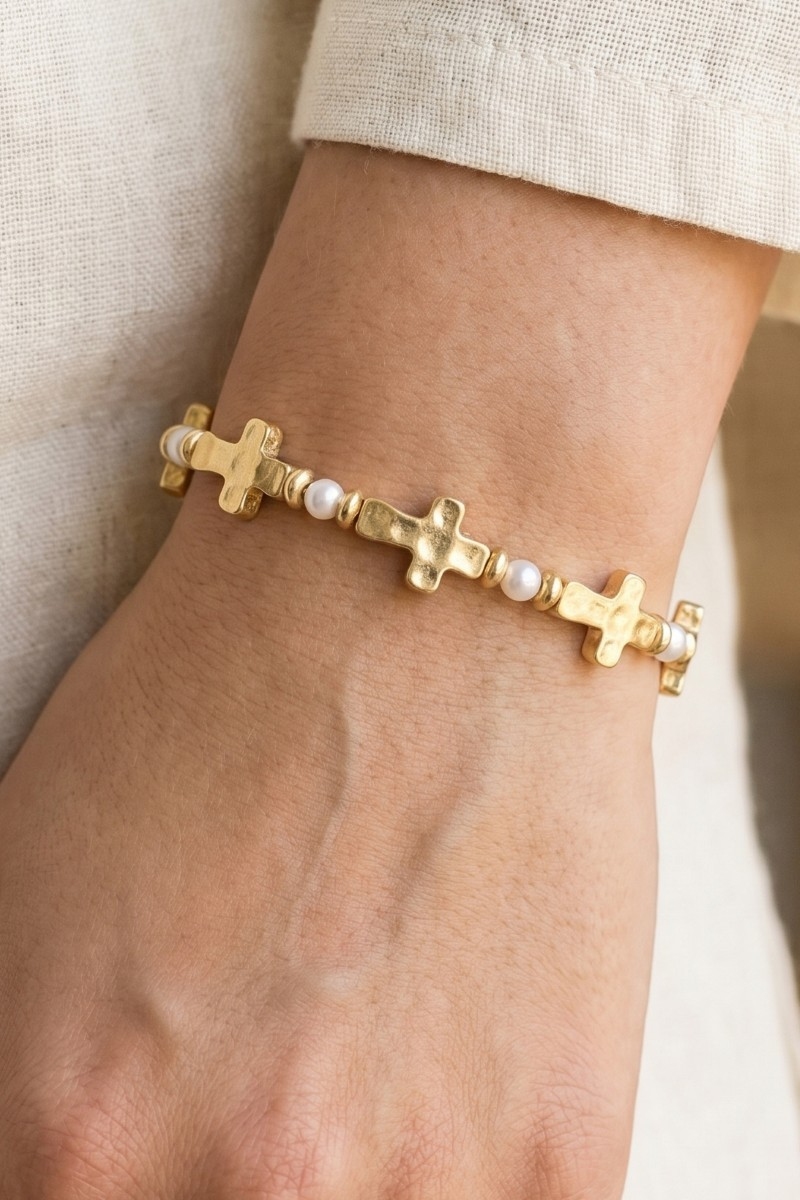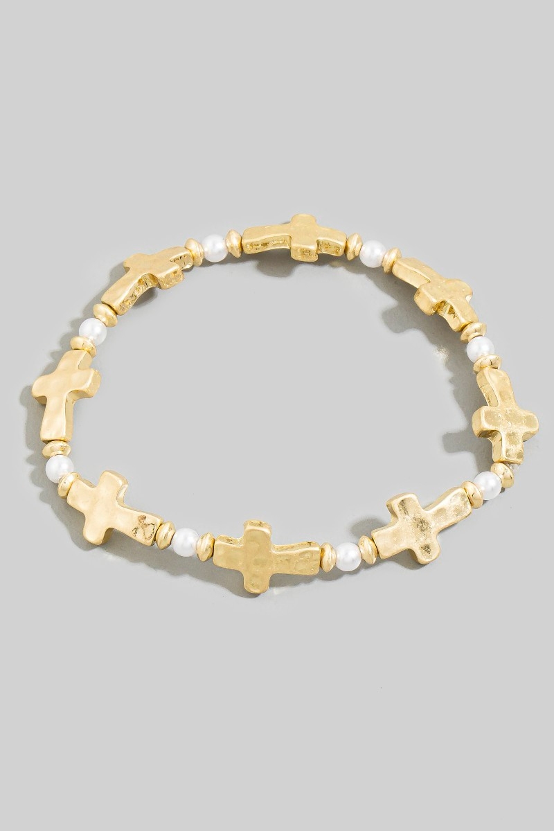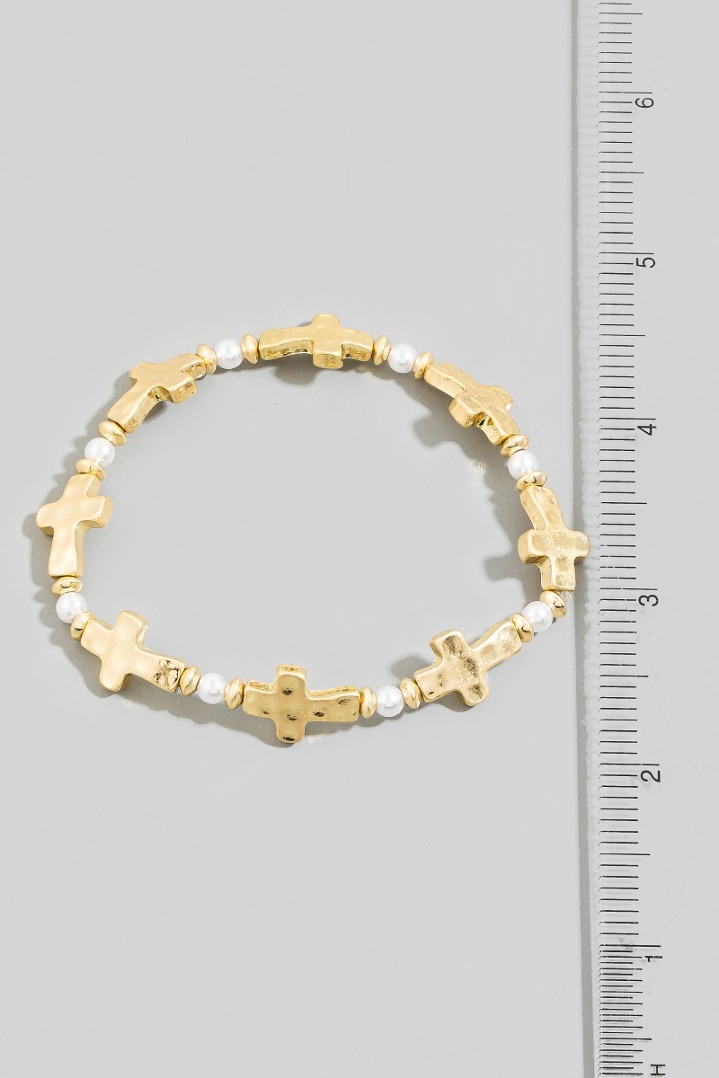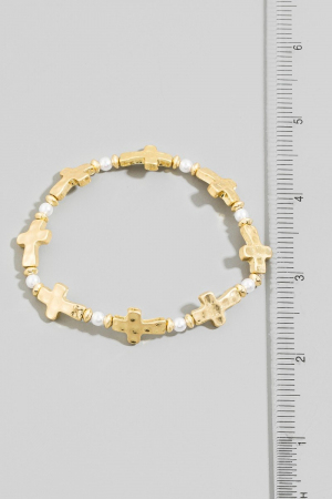 - This stretch bracelet features a fashionable cross & pearl beaded style. Experience a subtle blend of modernity and classic charm as this stretch bracelet effortlessly adorns your ensemble.