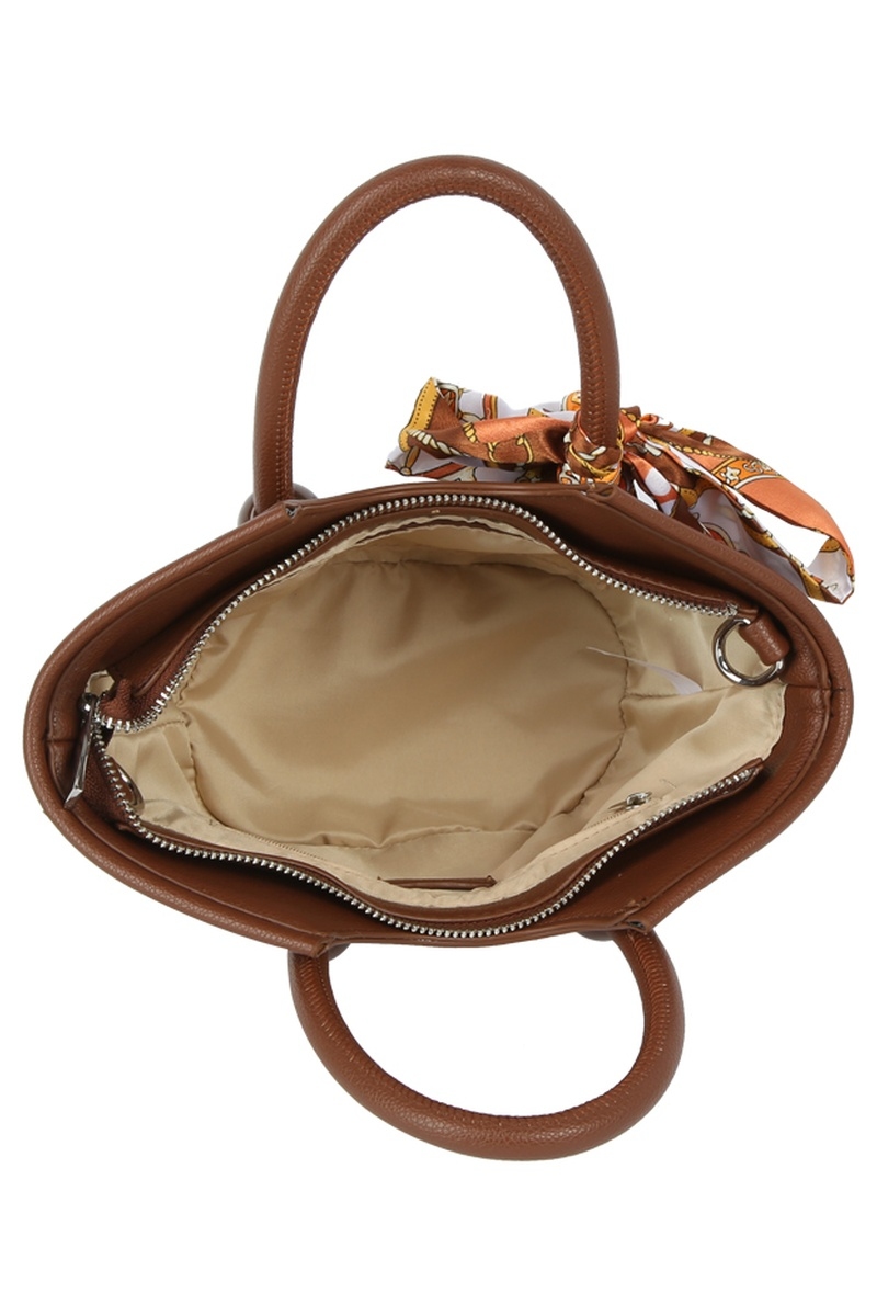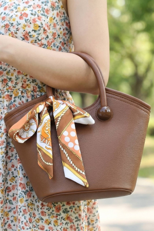 - This scarf showcases a timeless round top handle satchel style. Experience a burst of creativity in accessorizing as this piece effortlessly sets the tone for your unique style.