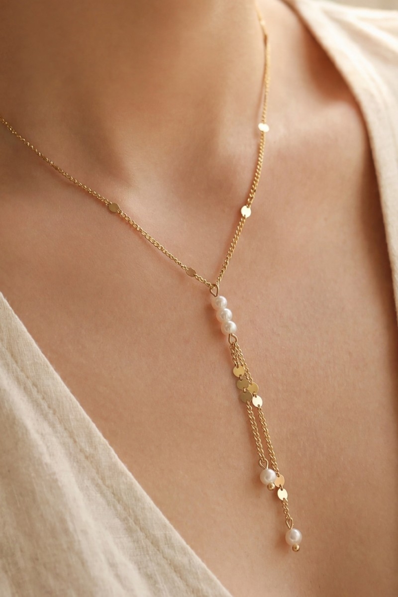 • This necklace brings a stunning dual chain pearl lariat y- style. Experience the joy of accessorizing with this piece that effortlessly combines versatility and charm.