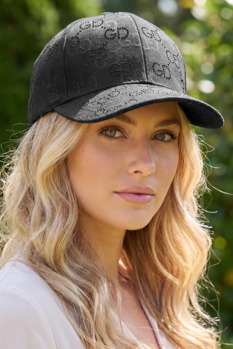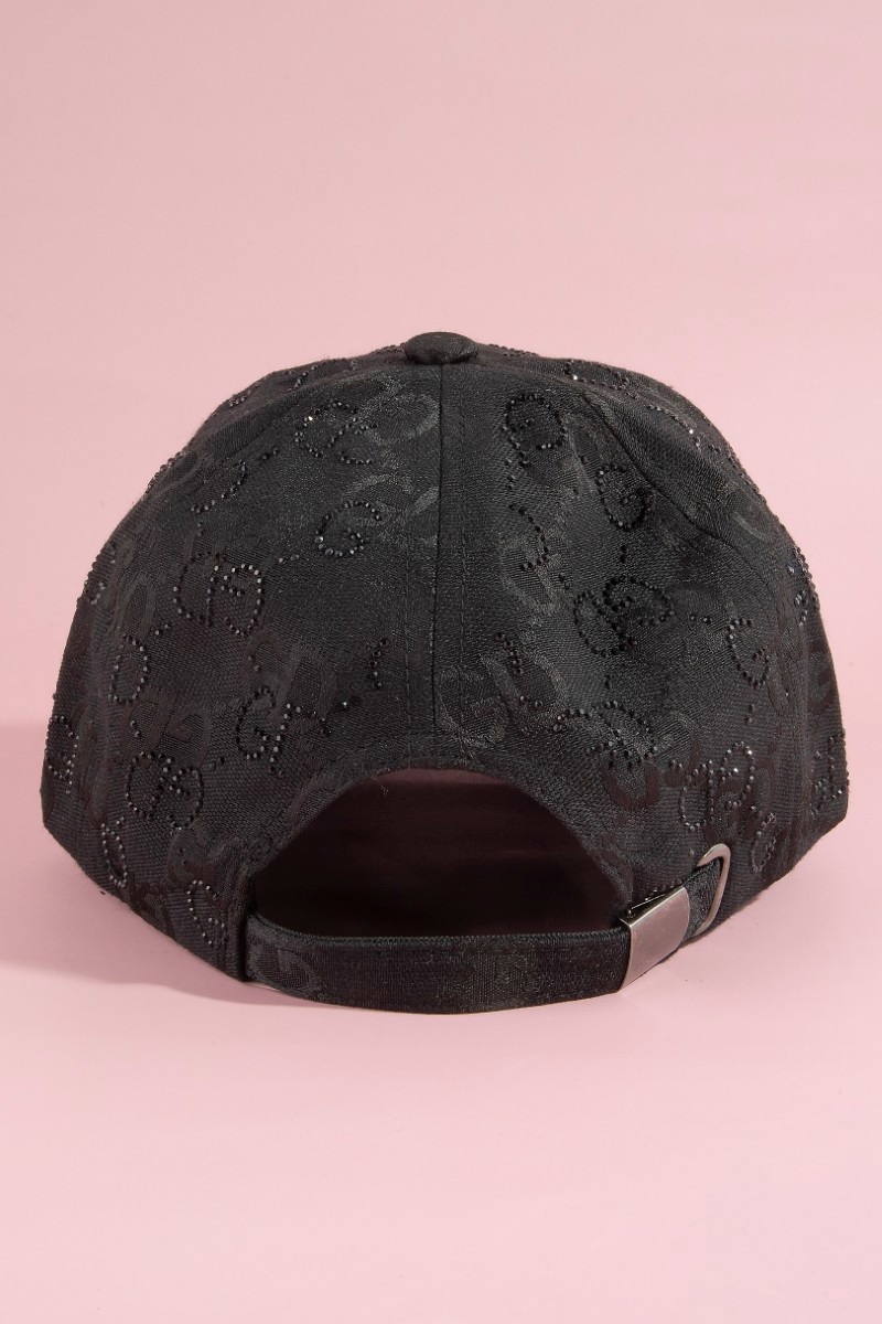 • This cap displays a fashionable monogram print rhinestone logo baseball style. Elevate your ensemble with this cap that effortlessly captures the essence of refined fashion.