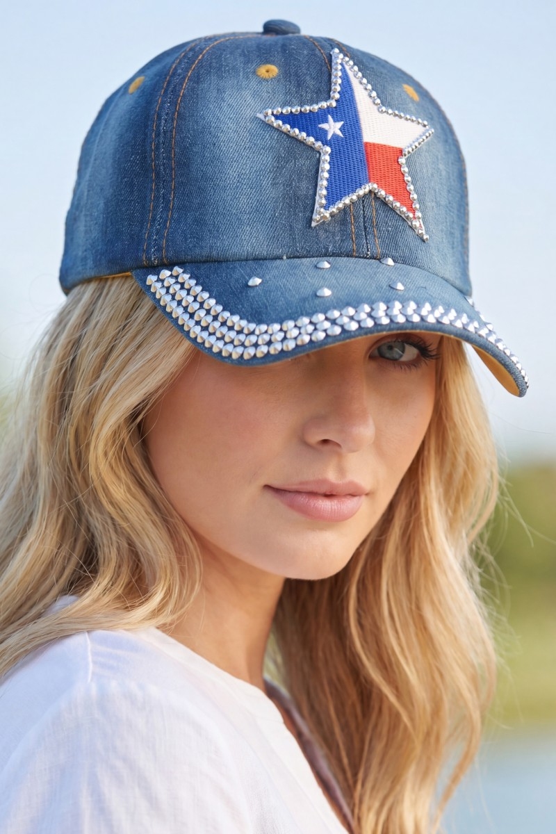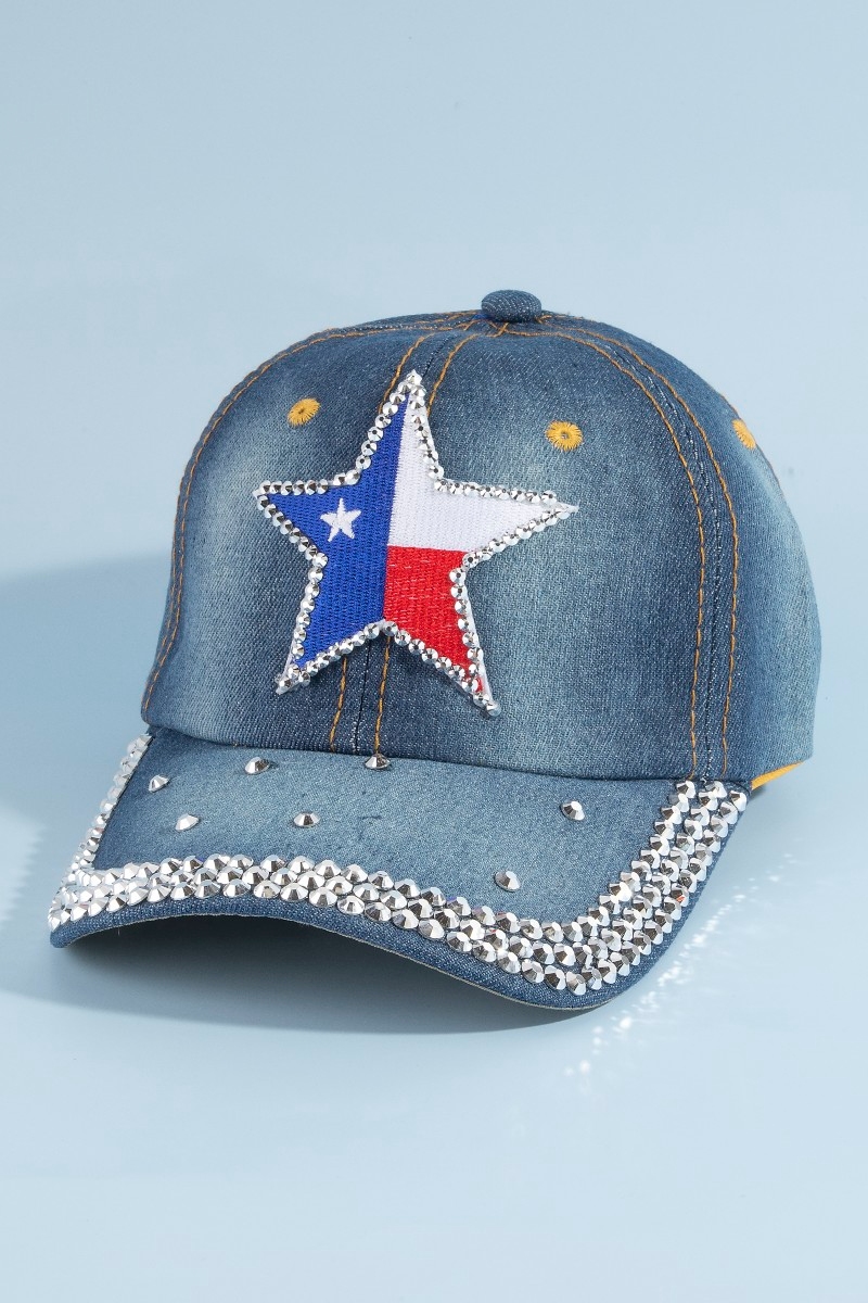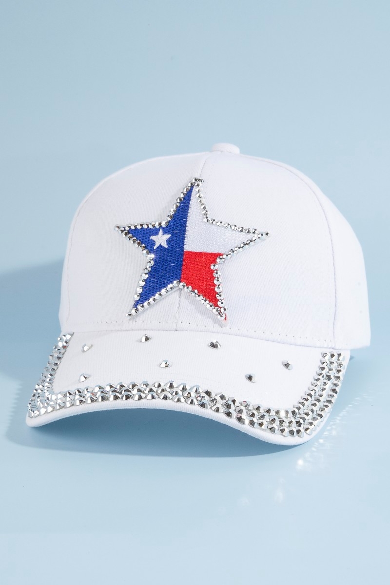 - This cap showcases a timeless texas star rhinestone patch baseball with crystal brim style. Explore a refined sense of style with this cap, seamlessly elevating the chic factor of your look.