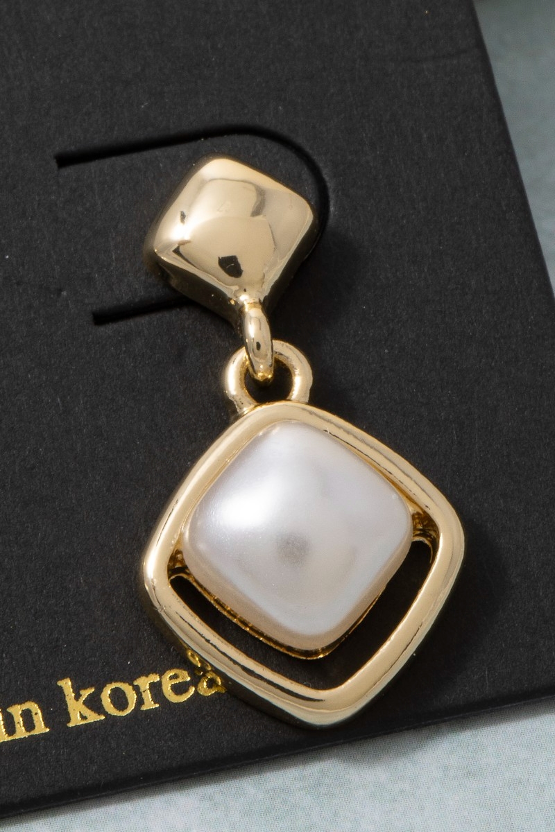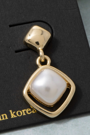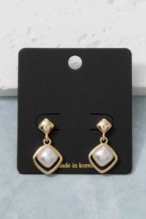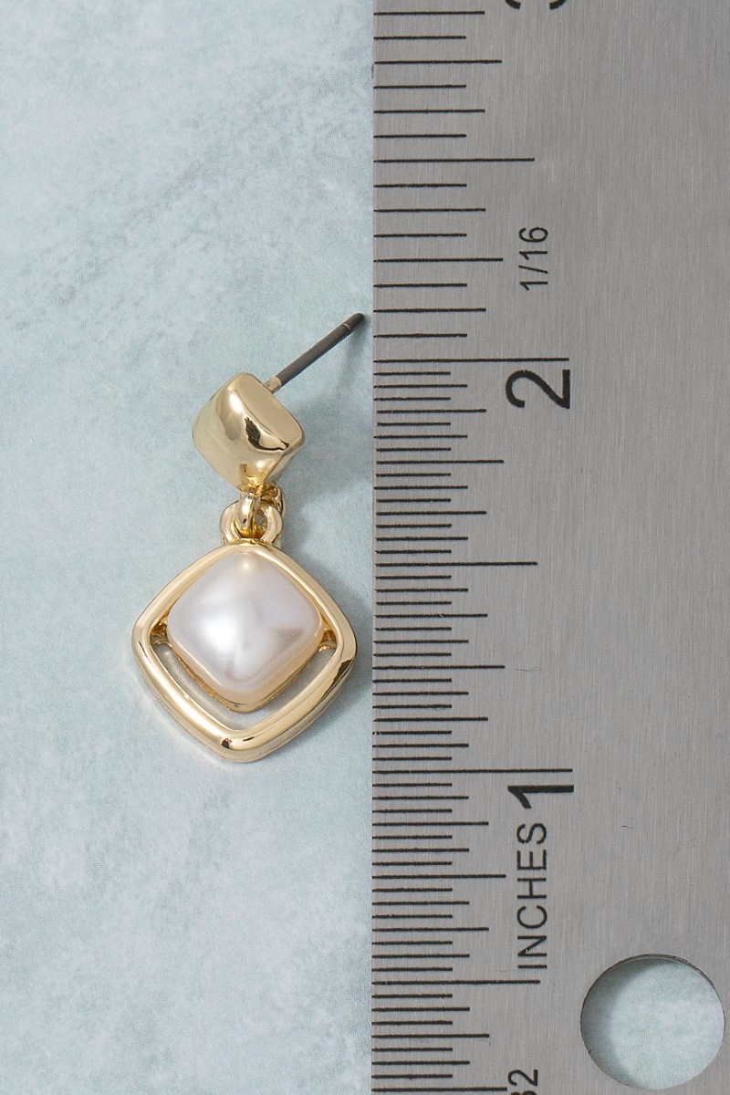 • This pair of drop earrings displays a vibrant square pearl in diamond frame style. Celebrate individual style with this versatile, eye-catching addition.