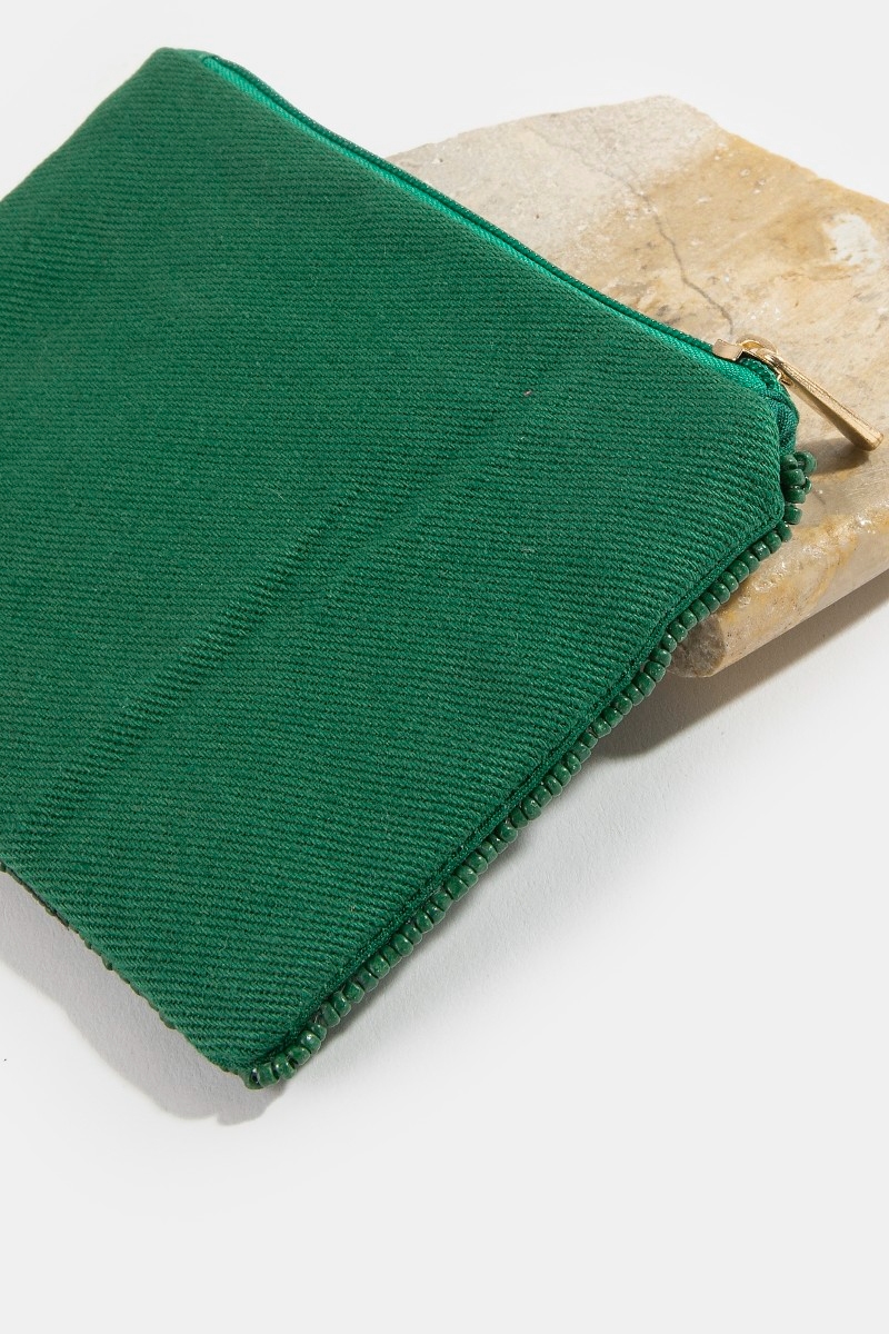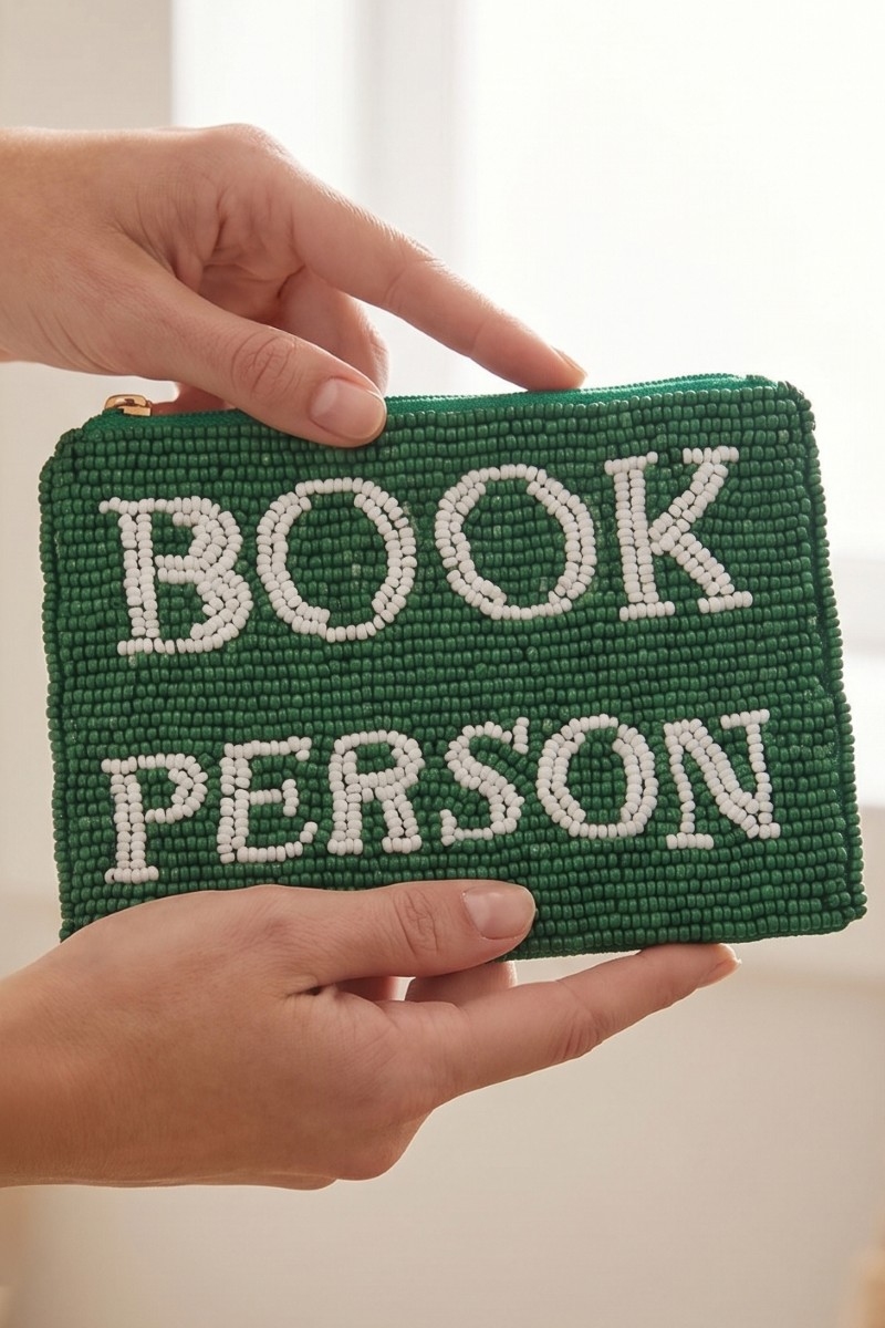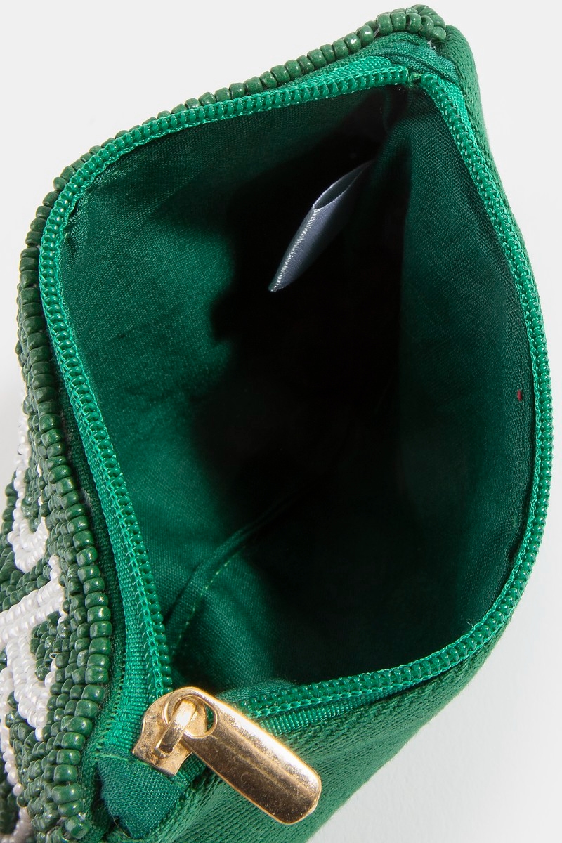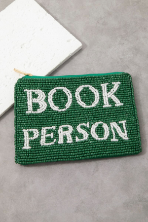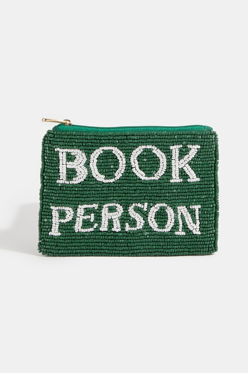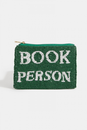- This coin purse adds a modern book person green beaded style. Witness the perfect fusion of style and functionality as this coin purse effortlessly complements your lifestyle.
