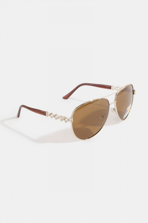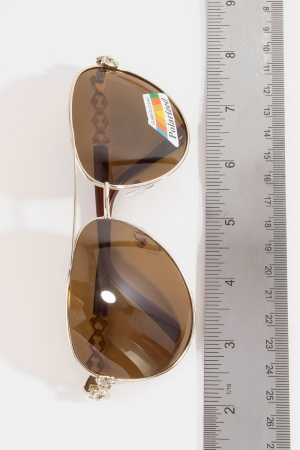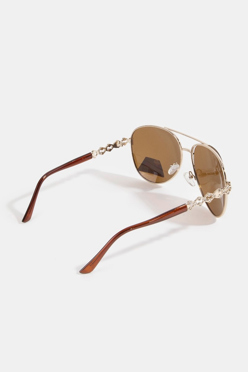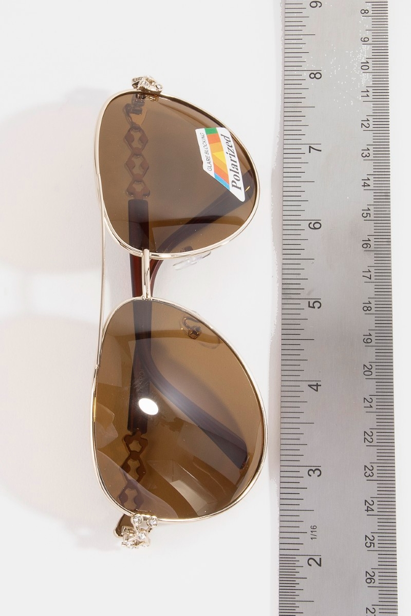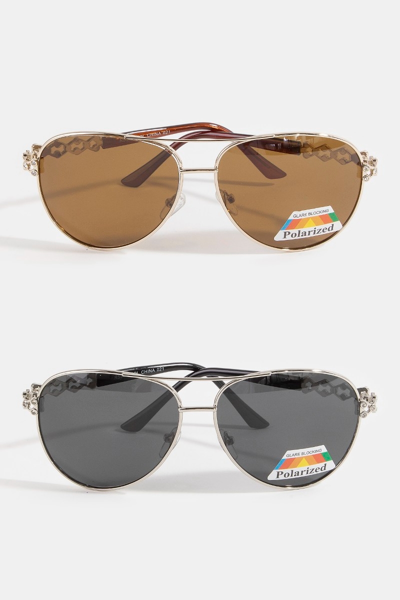 - This set of sunglasses showcases a unique polarized crystal-temple aviator sunglasses style. Experience a burst of creativity in accessorizing as this piece effortlessly sets the tone for your unique style.